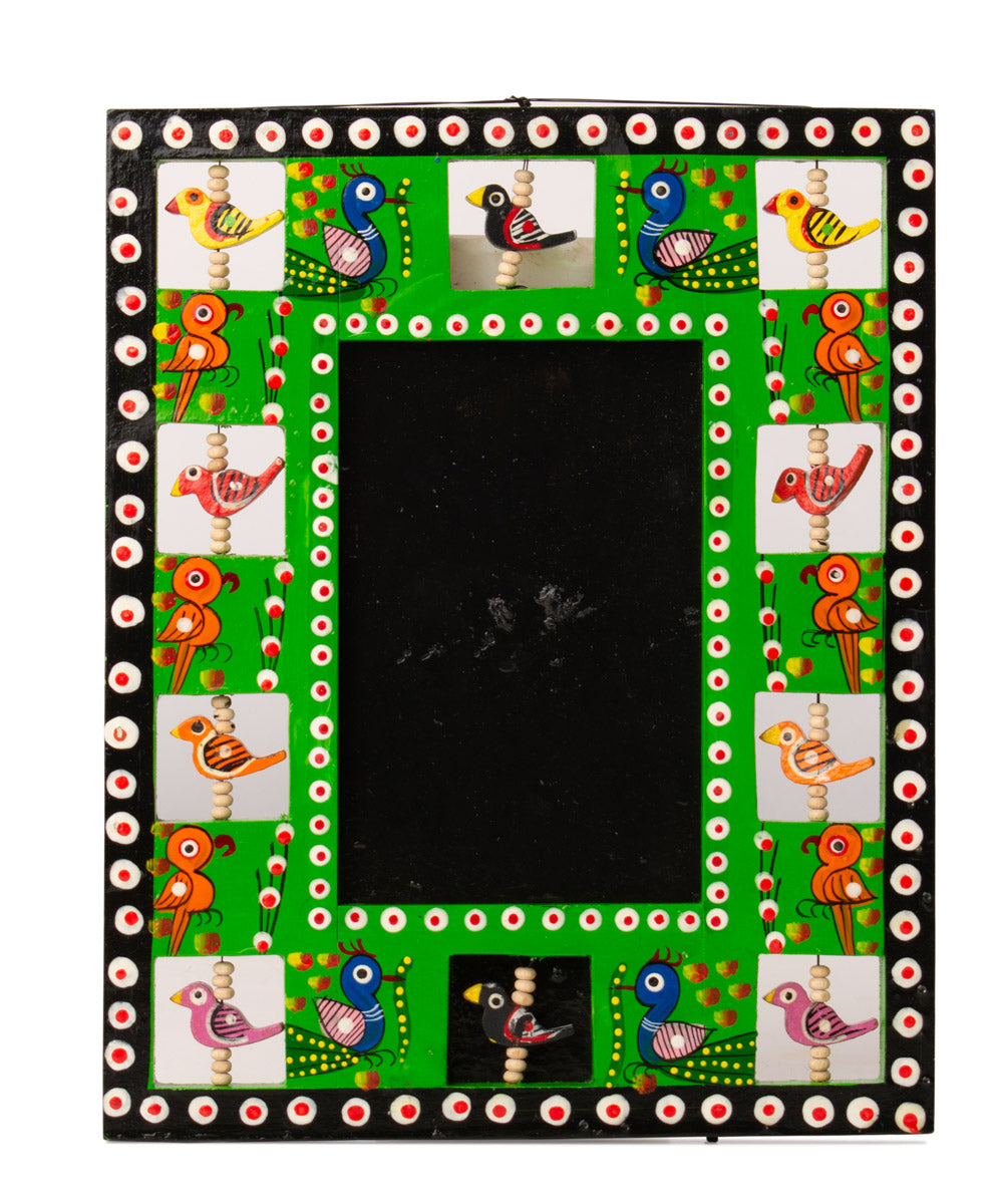 Frame your memories with a splash of folk art using this vibrant hand-painted wooden photo frame. Adorned with colorful birds, dot motifs, and bold borders, this frame brings a playful, artisanal charm to any space. Perfect for showcasing cherished moments, it’s a unique addition to desks, side tables, or gallery walls.