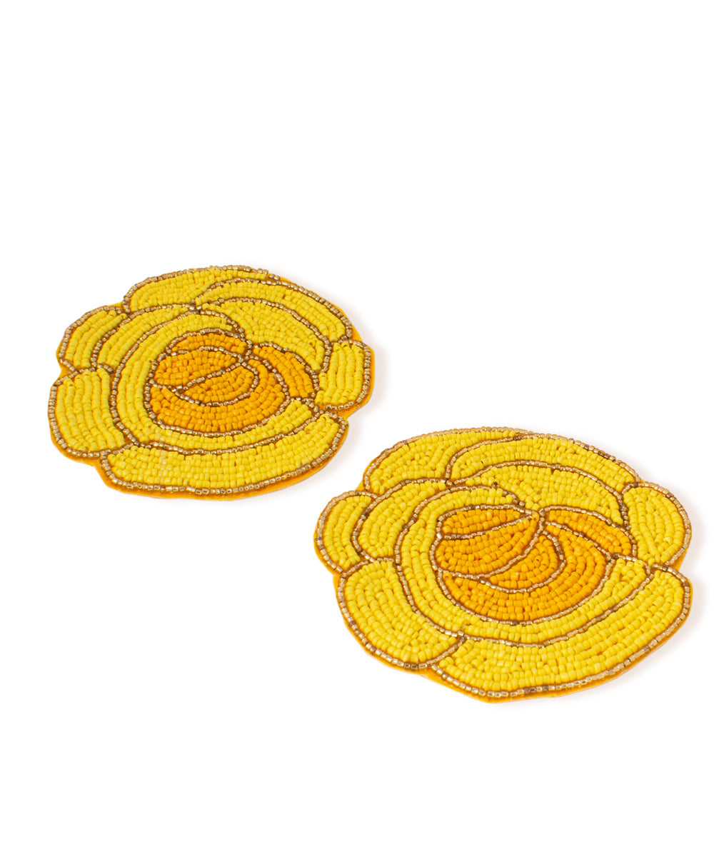 Add a touch of sophistication to your table setting with this exquisite hand-beaded coaster. Designed with intricate beadwork in a delicate floral pattern, this coaster is perfect for elevating your dining or coffee table aesthetics while protecting surfaces from heat and spills.