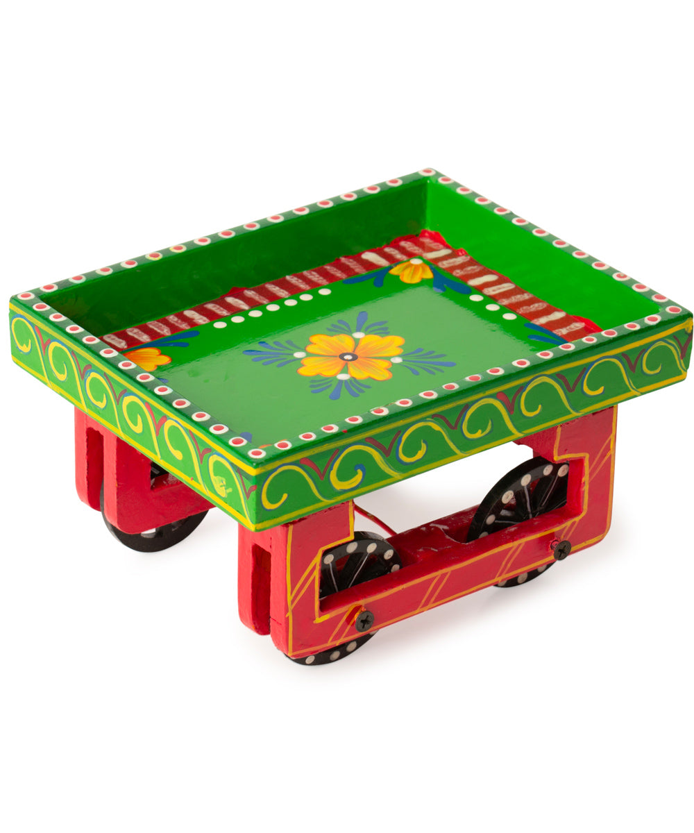 Add a splash of desi charm to your decor with this vibrant hand-painted wooden thela tray, inspired by India’s iconic street carts. Brightly colored with floral and folk motifs, this quirky mini cart is perfect for serving dry snacks, holding festive favors, or as a fun tabletop accent. With its playful wheels and vivid detailing, it’s a delightful mix of tradition and creativity.