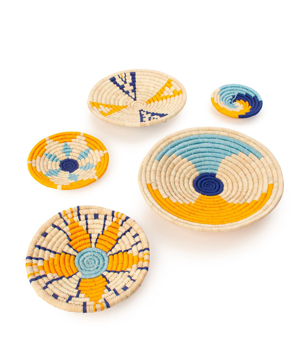 • Handwoven from Sustainable Sabai Grass• Set of 5 with Vibrant Geometric Designs