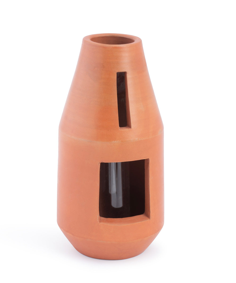 • Crafted from natural terracotta for an organic and breathable environment for plants• Built-in glass tube to support hydroponic plants, cuttings, or fresh flowers
