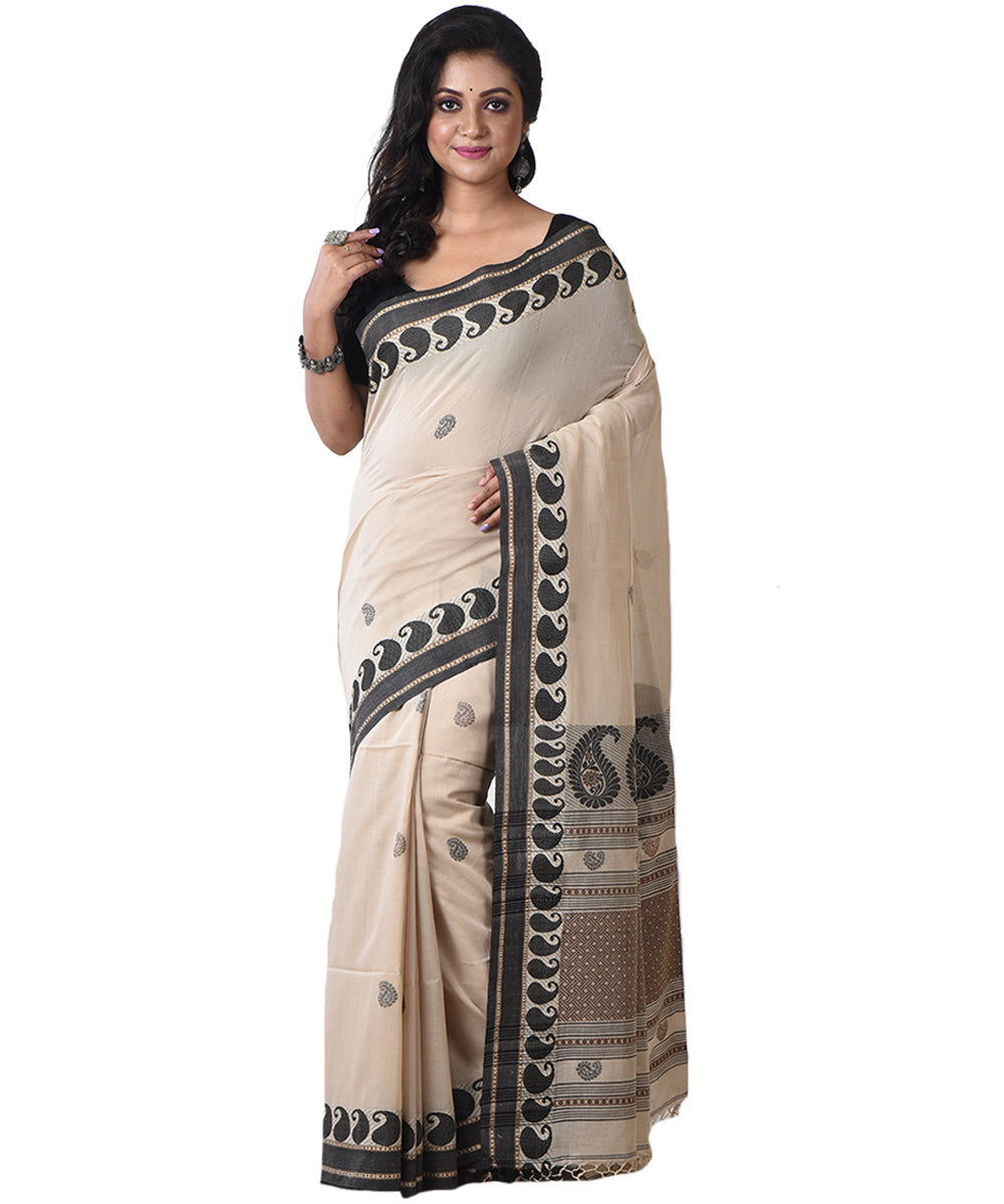 This Handwoven Cone Dyed Cotton Saree has been woven in 80count cotton in warp way and 80 count cotton in weft way then inticrate handwoven design done on it.