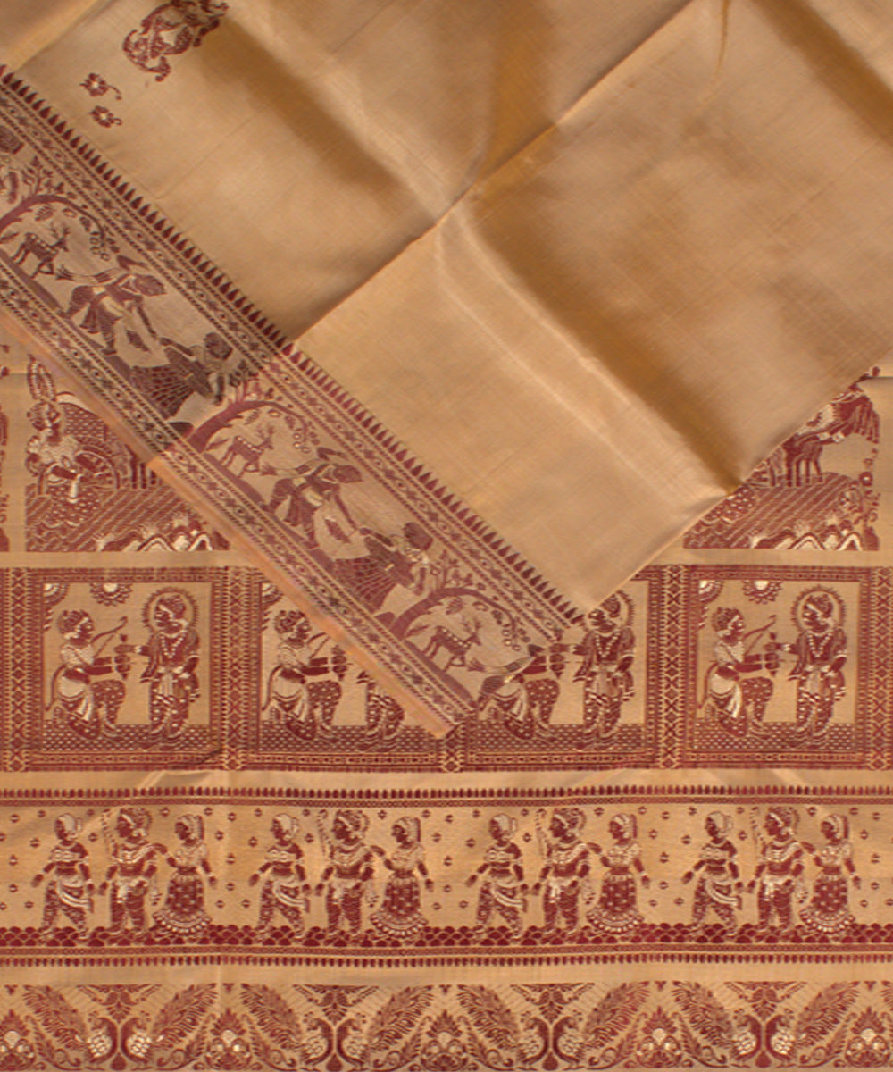 Beige mustard handwoven silk baluchari saree