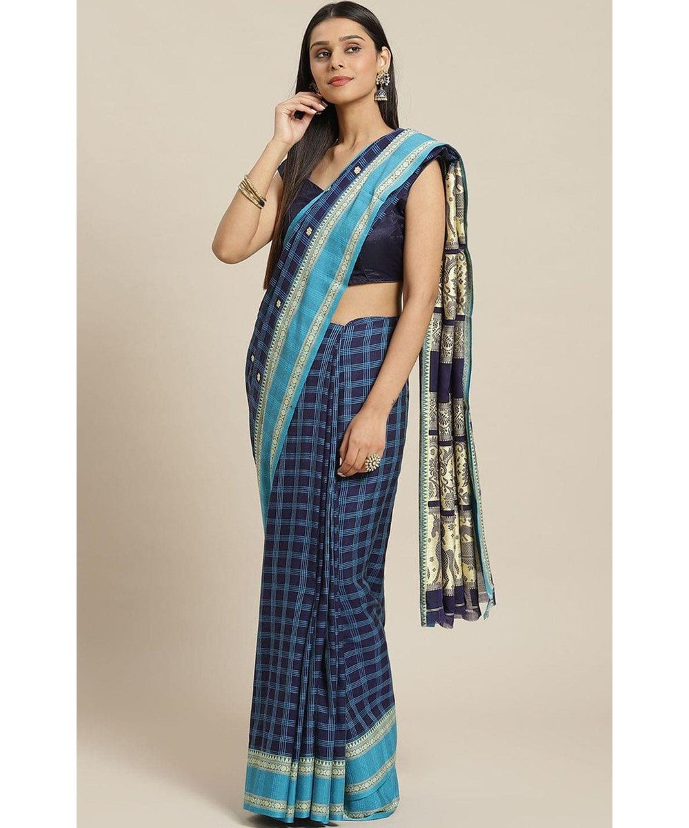 Biswa bangla handwoven blue handspun cotton jamdani saree