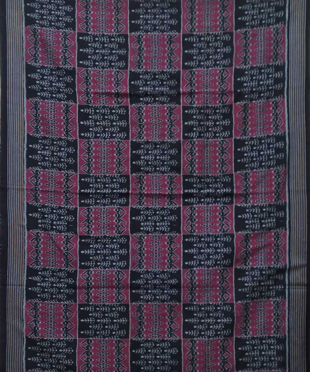 Black dark raspberry handwoven nuapatana ikat cotton saree