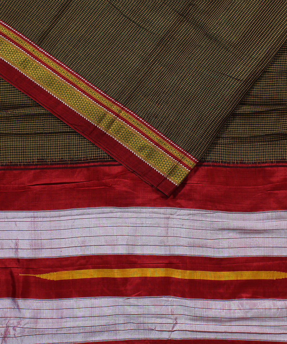 Black orange green checks art silk handwoven chikki paras ilkal saree