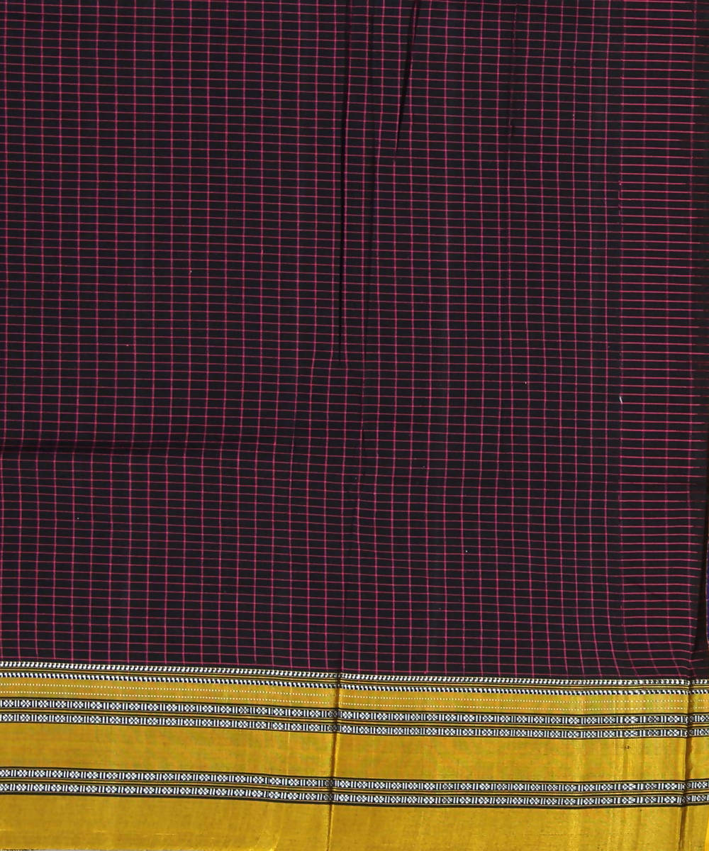 • The tope teni technique of externally joining the saree pallu and the saree body leaves fray yarn at the back of the surface. These can be trimmed further by a tailor if necessary.