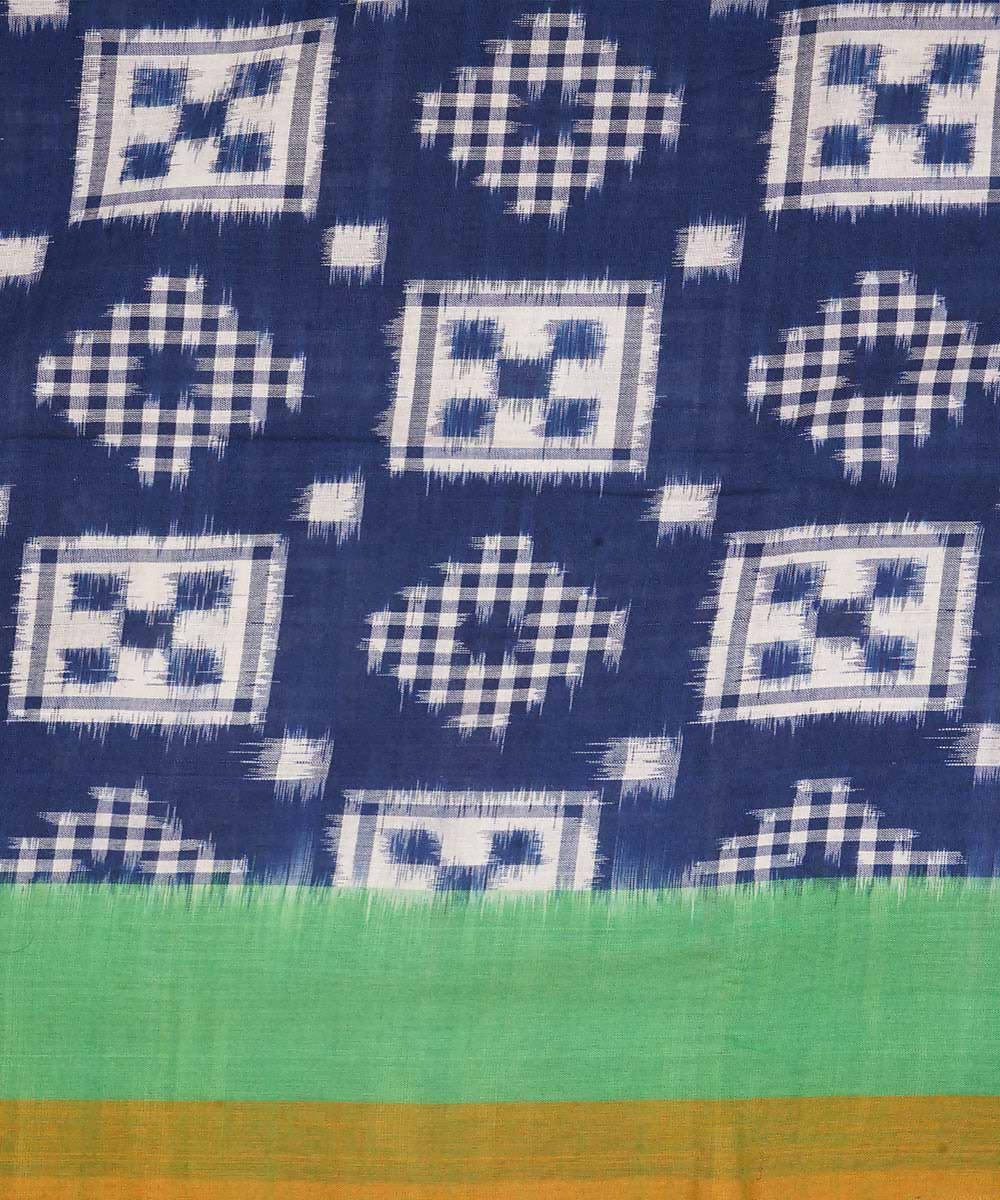 Blue and green cotton handloom double ikat pochampally saree