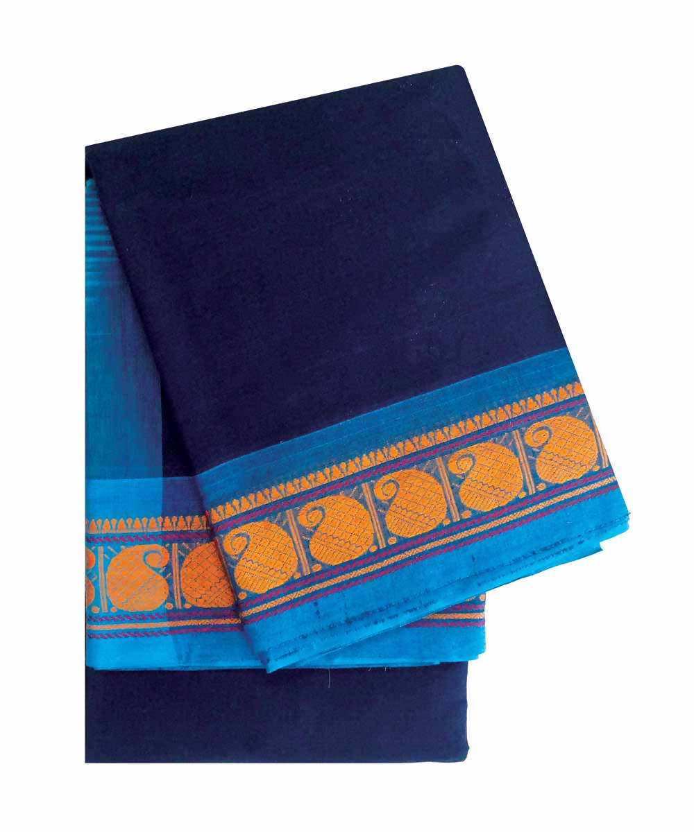 Blue black handwoven cotton kanchi saree
