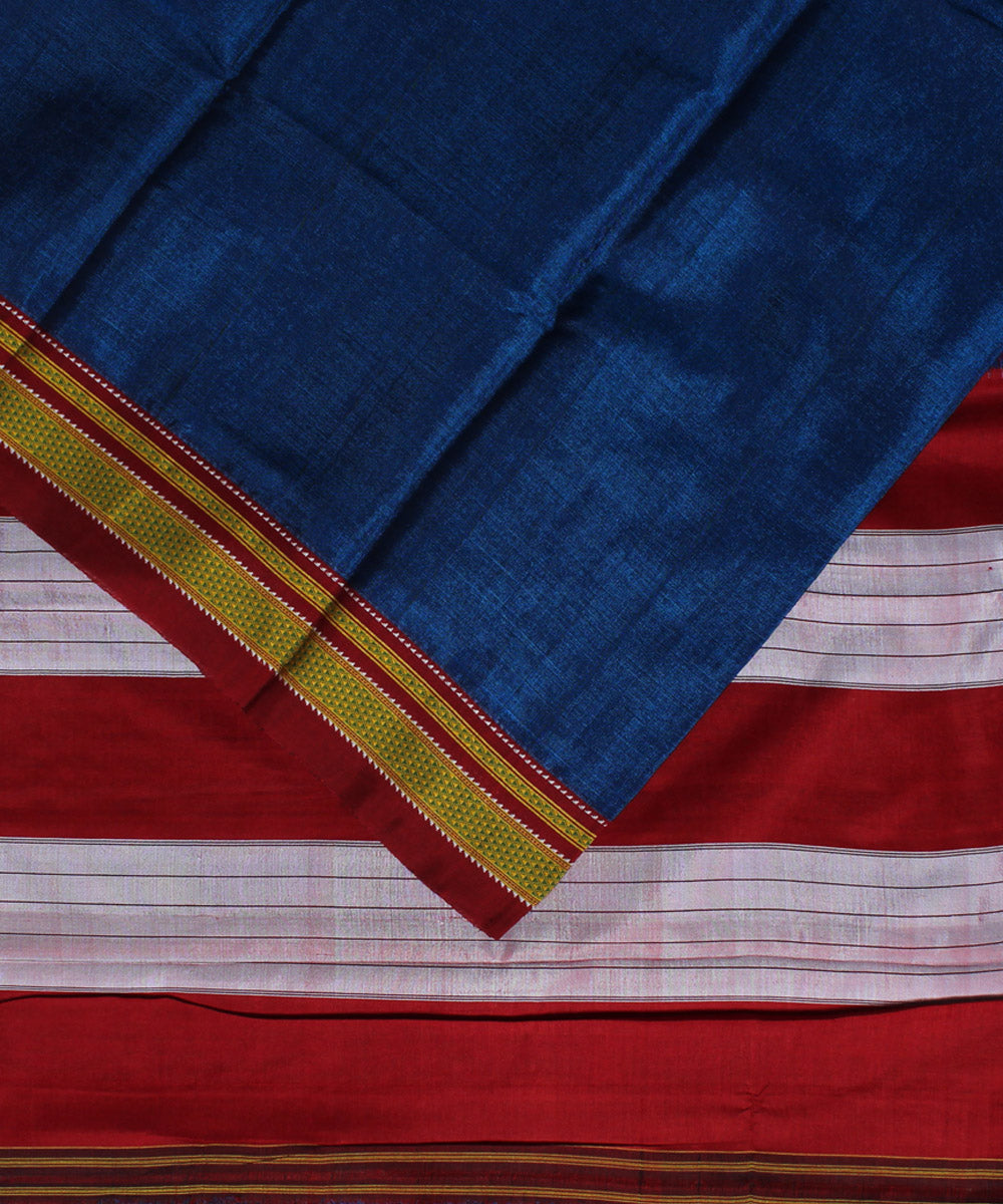 Blue red chikki paras cotton art silk handloom ilkal saree