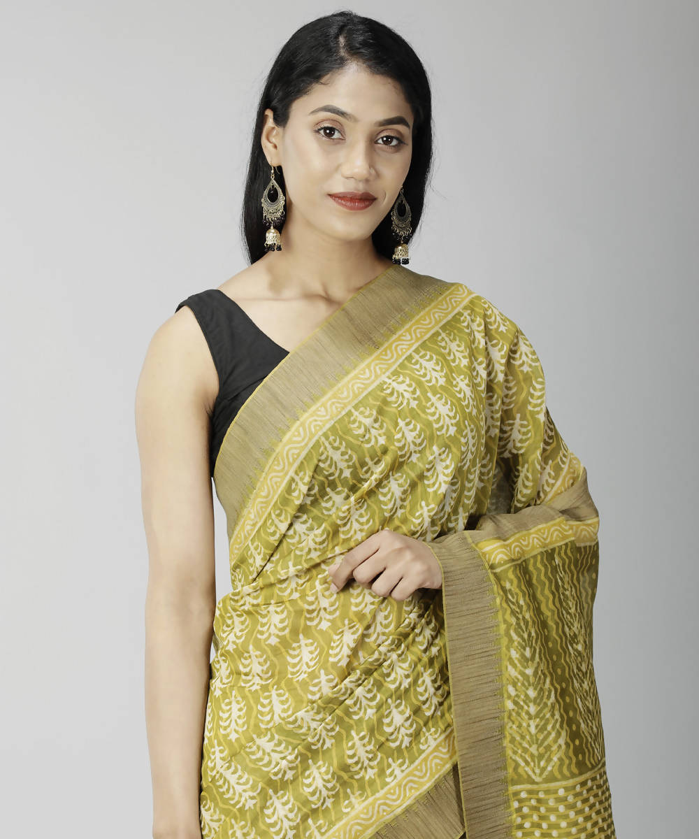 Brass bagru handblock printed cotton silk saree