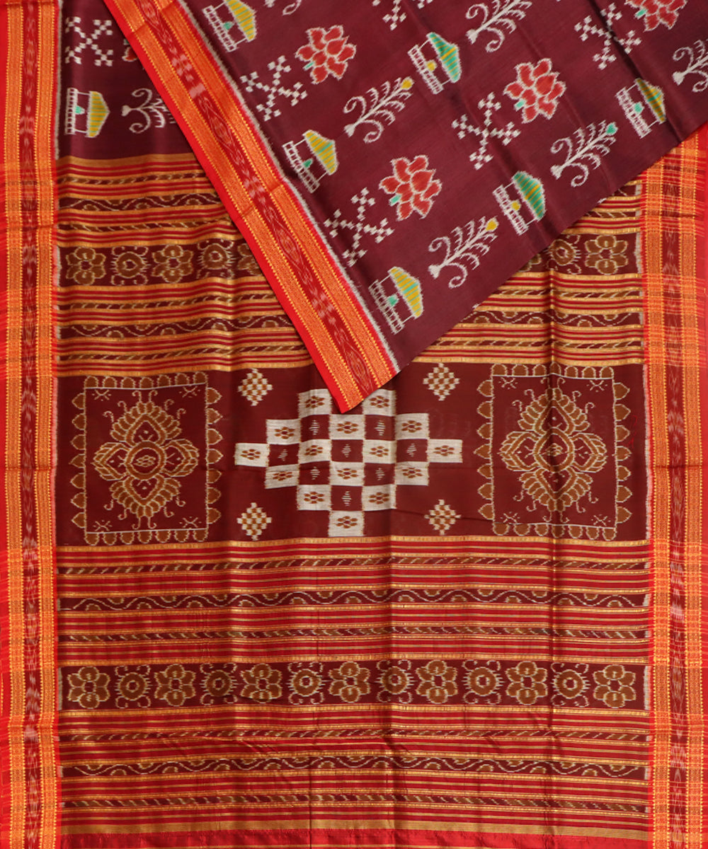 Burgundy red silk handwoven khandua saree