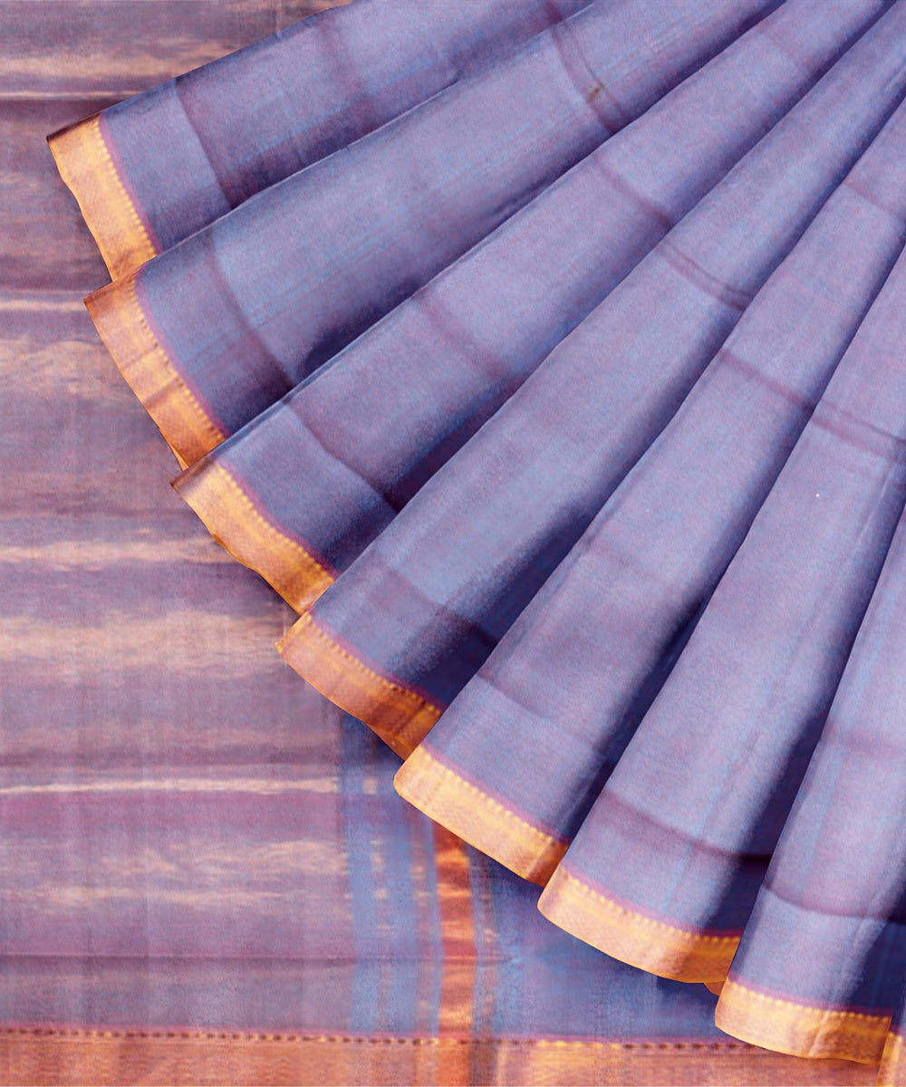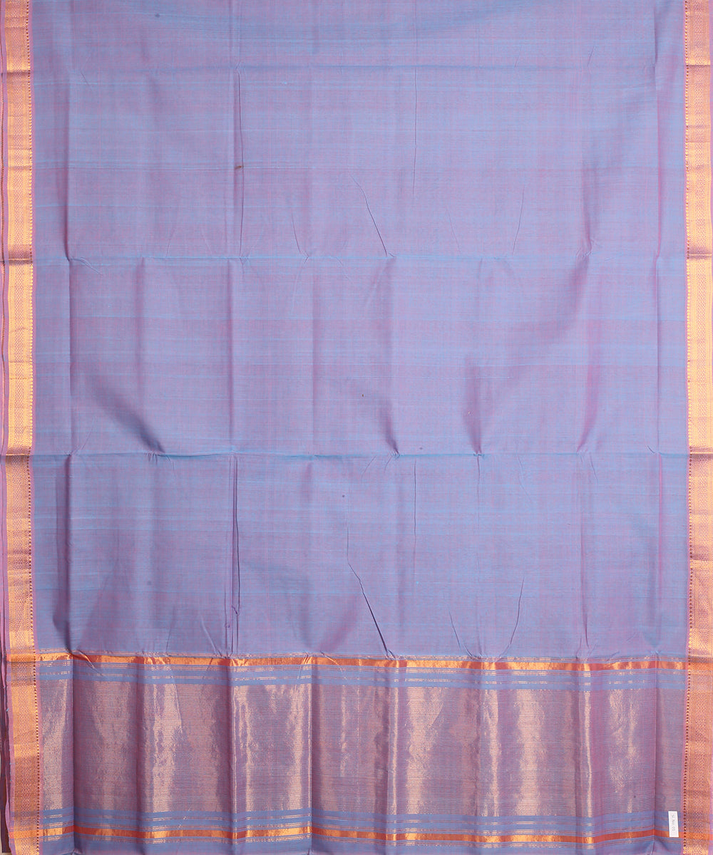 Cyan blue gold zari border handwoven cotton mangalagiri saree