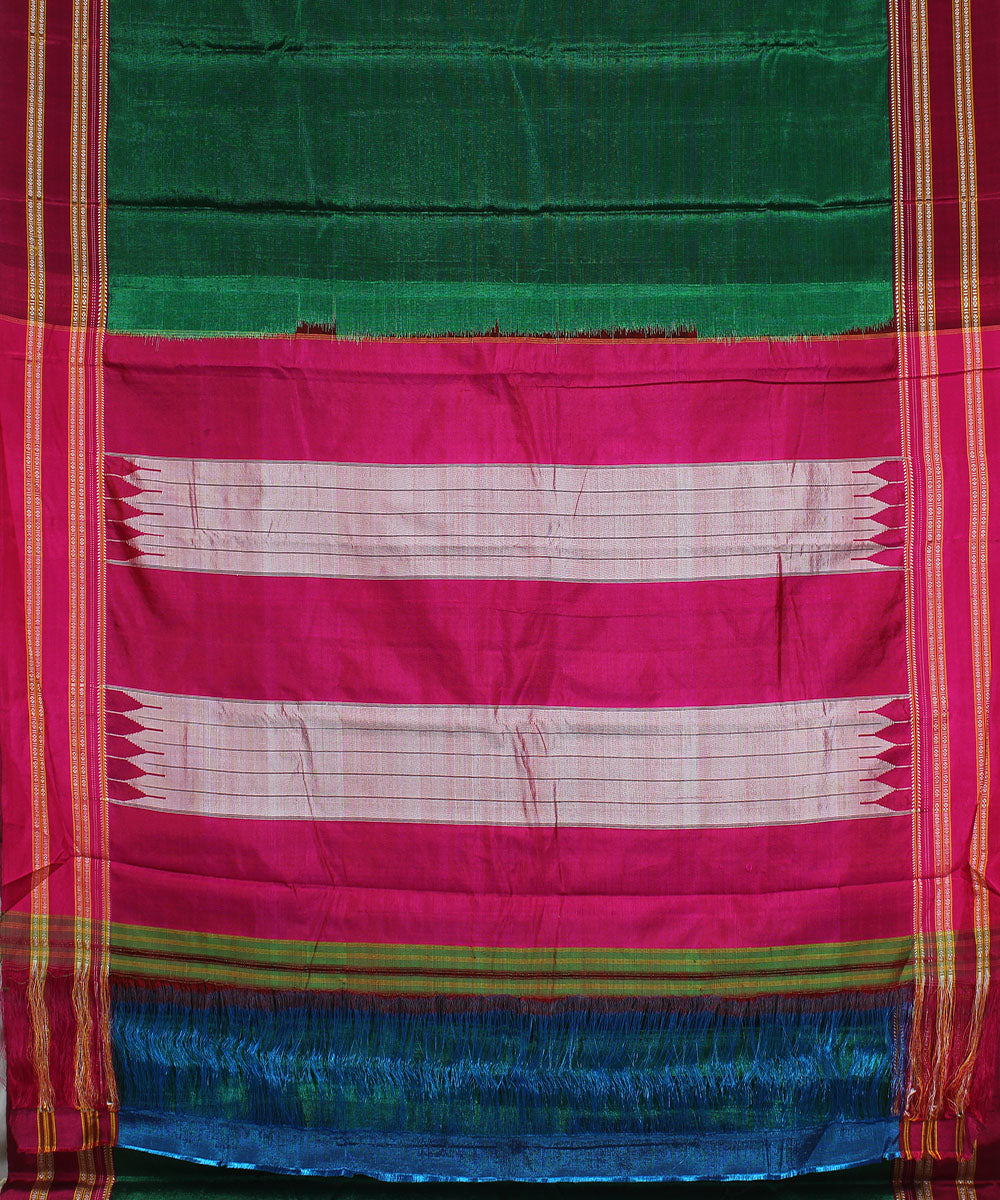 Dark green pink gayatri border handwoven ilkal cotton art silk saree