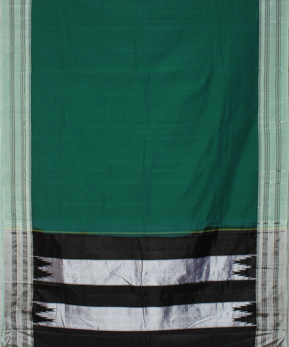 Green black handwoven cotton art silk gayatri border ilkal saree