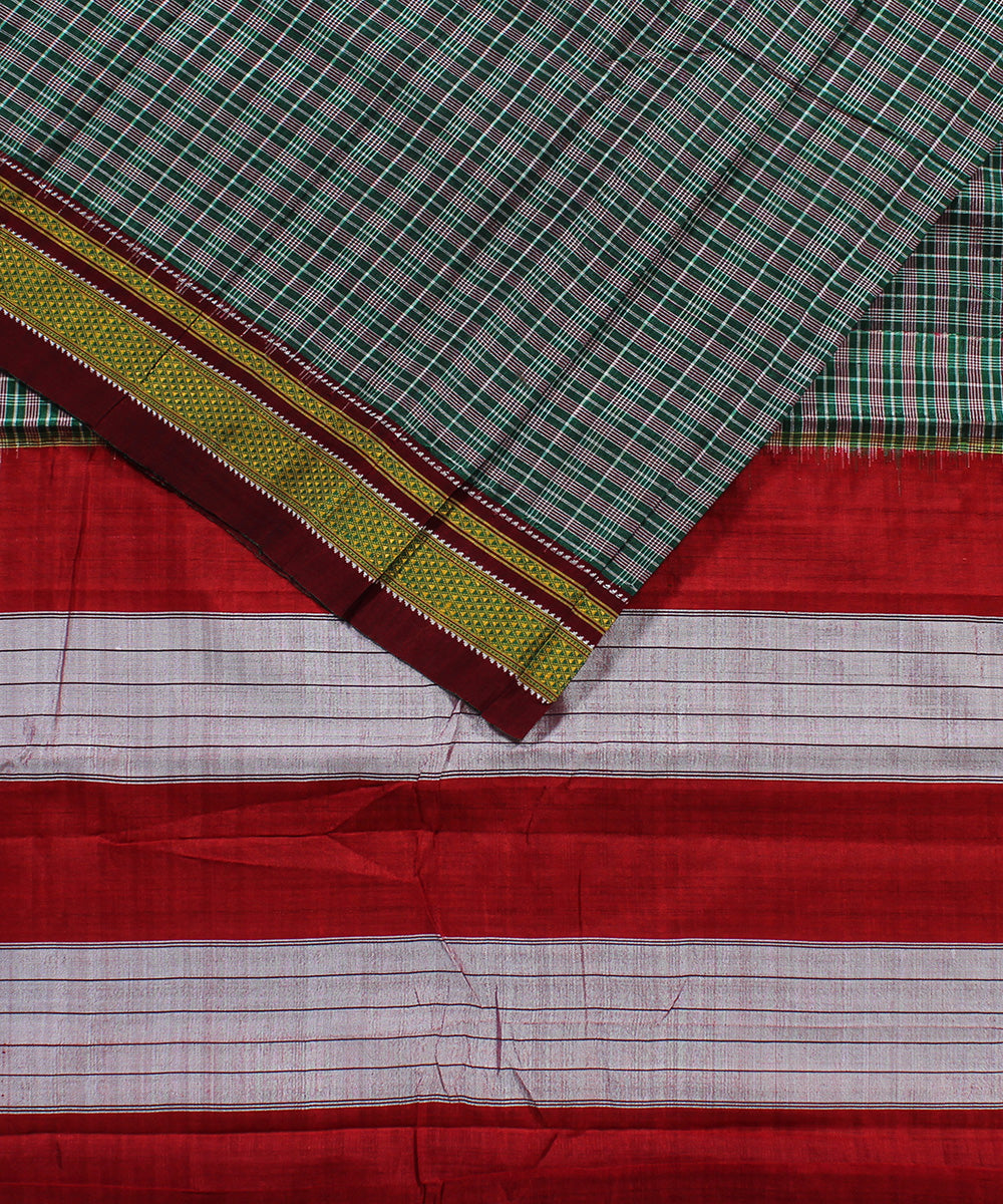 Green white pink checks art silk handwoven chikki paras ilkal saree