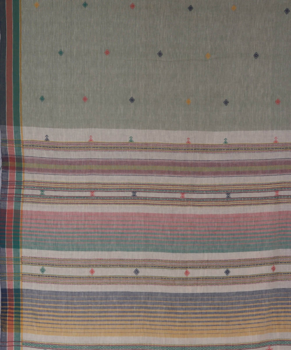 Leaf green handwoven kutchi weave kala cotton saree