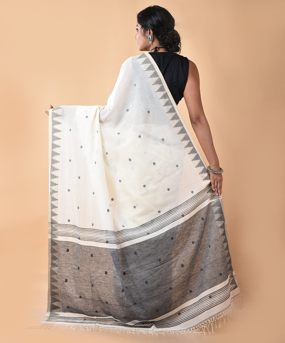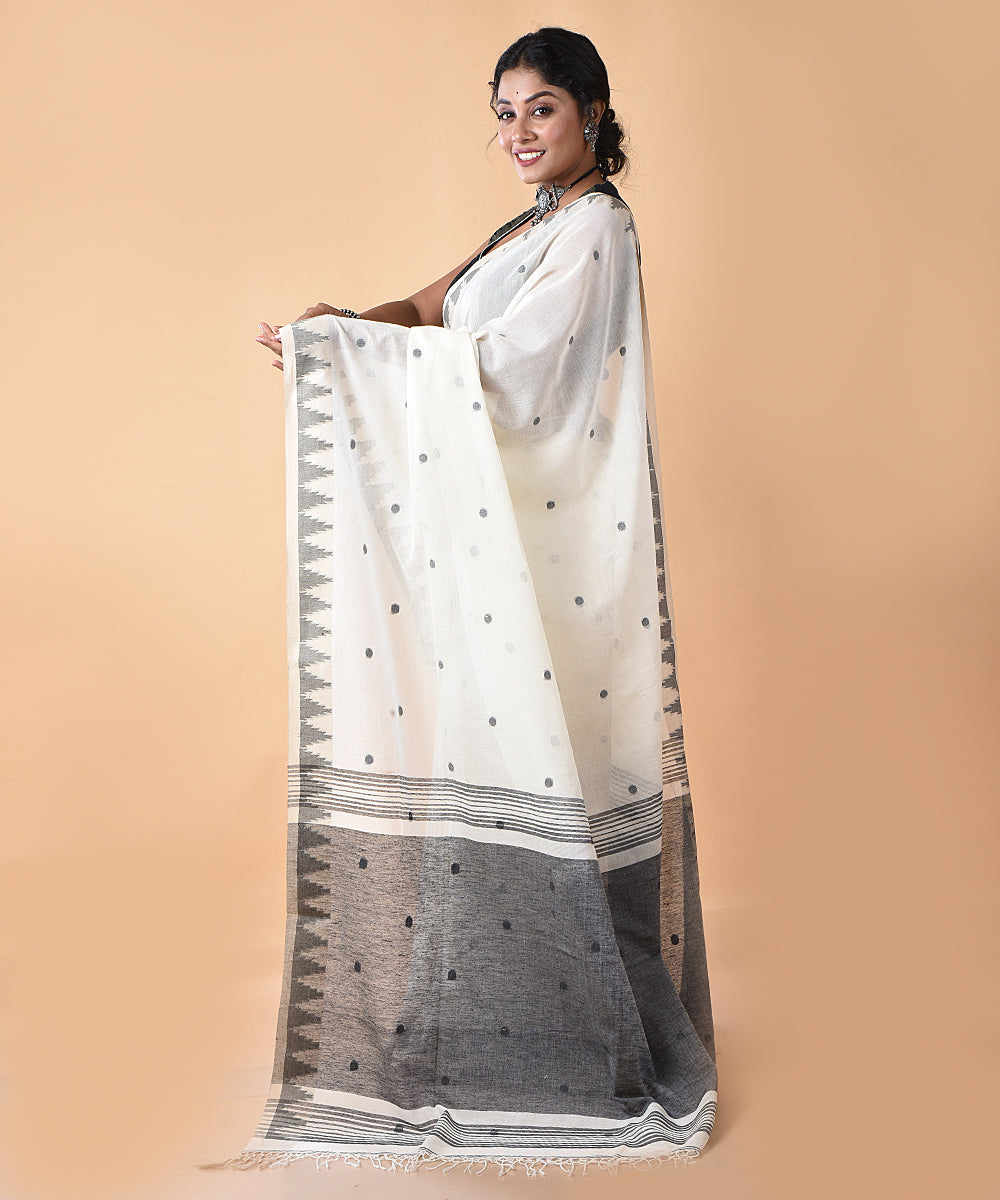 Offwhite black cotton handwoven jamdani saree