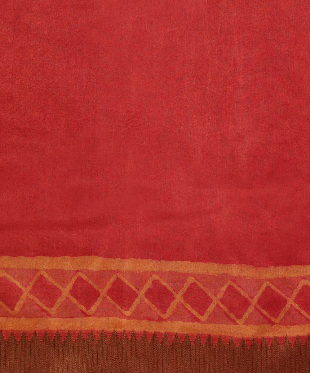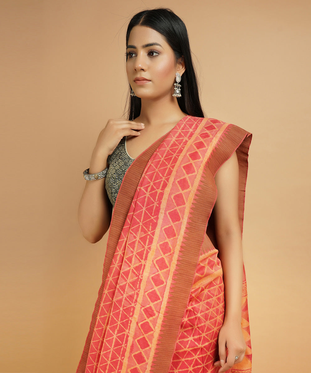 Orange gheecha border cotton silk handblock dabu print sari