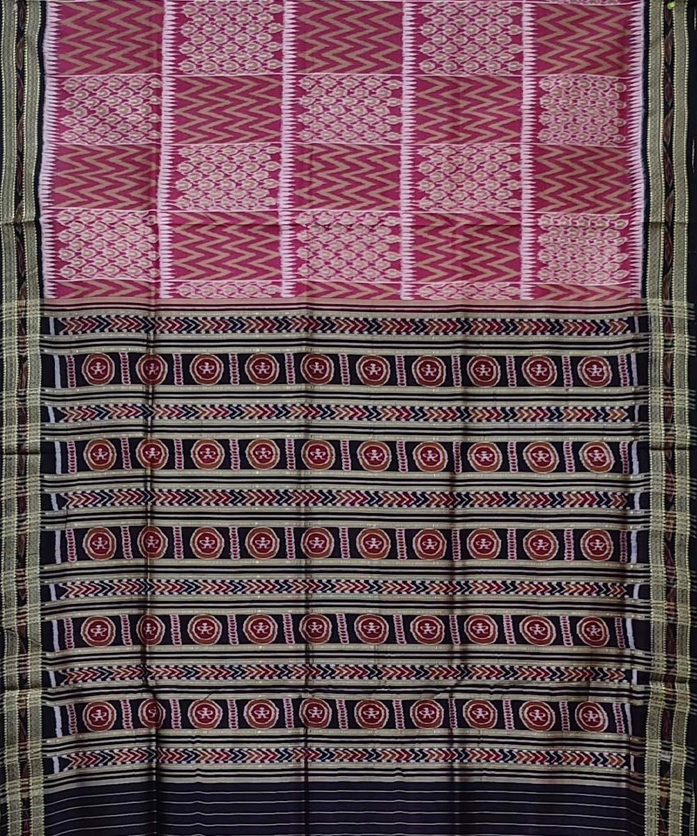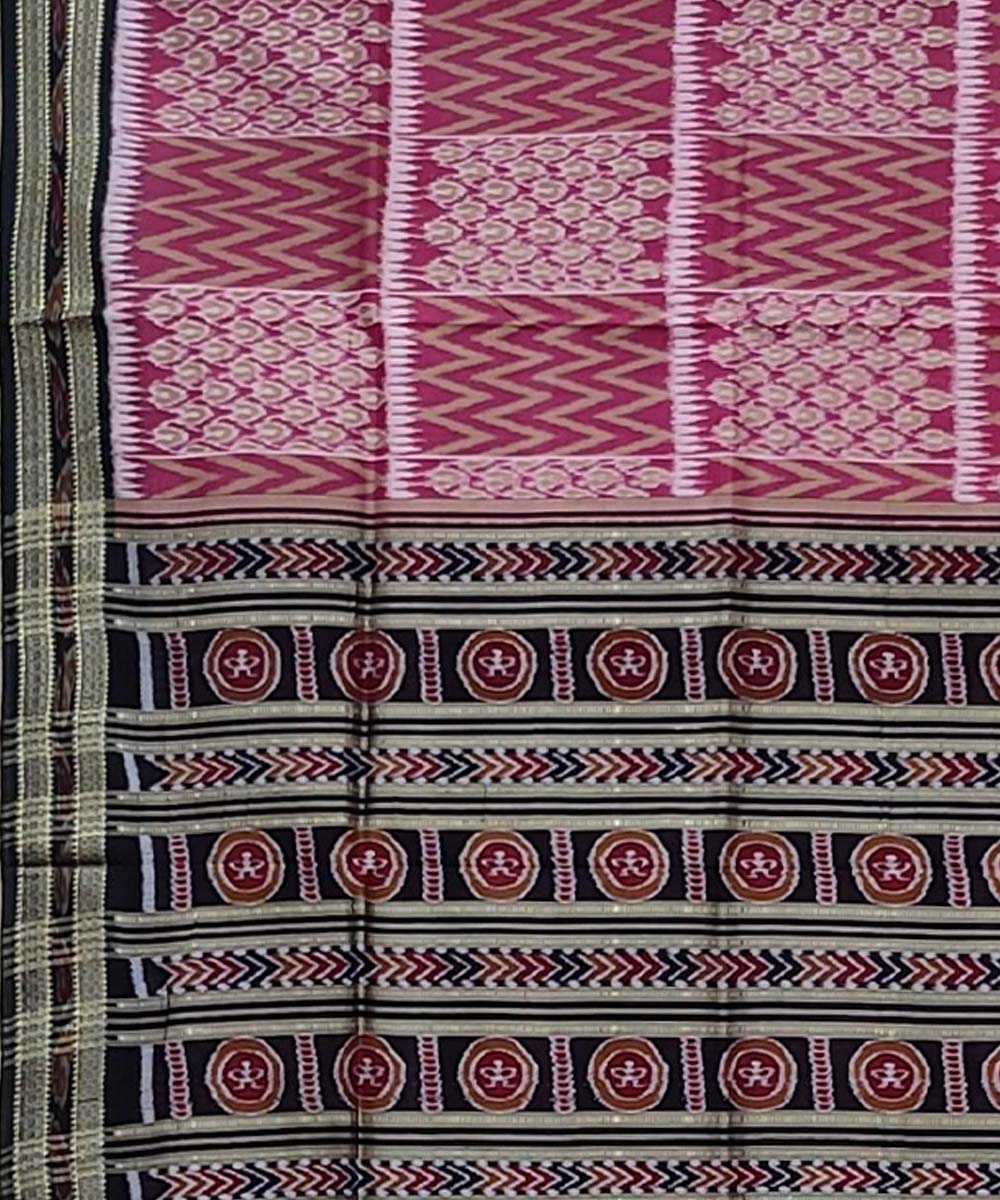 Peach black handwoven khandua silk saree