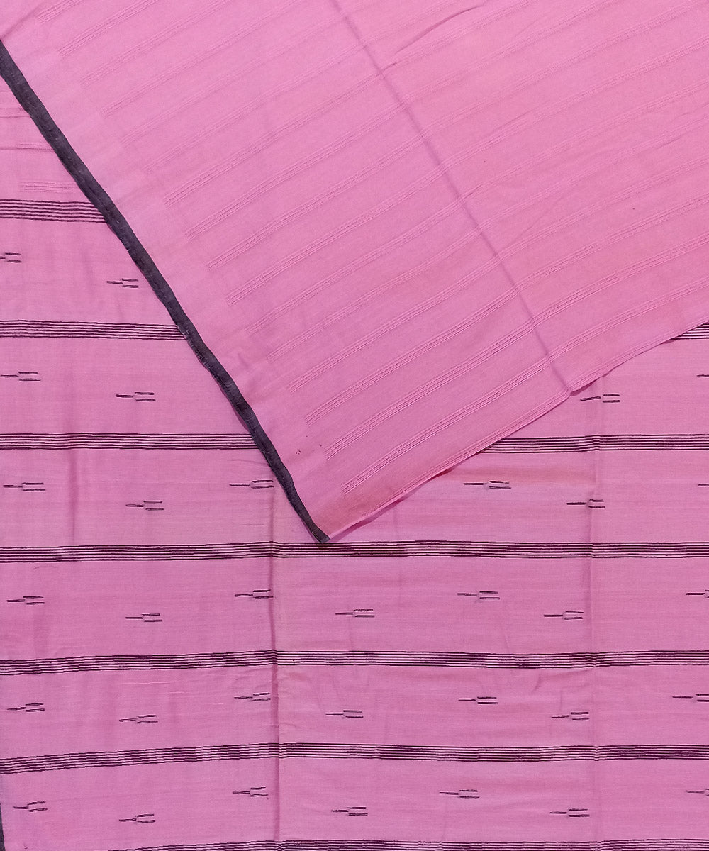 Pink black cotton handloom bengal saree