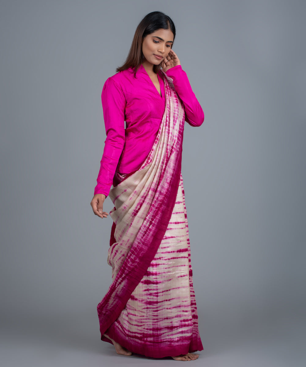 feel good in this pink handwoven shibori ikat gopalpur tussar silk saree from the looms of odisha