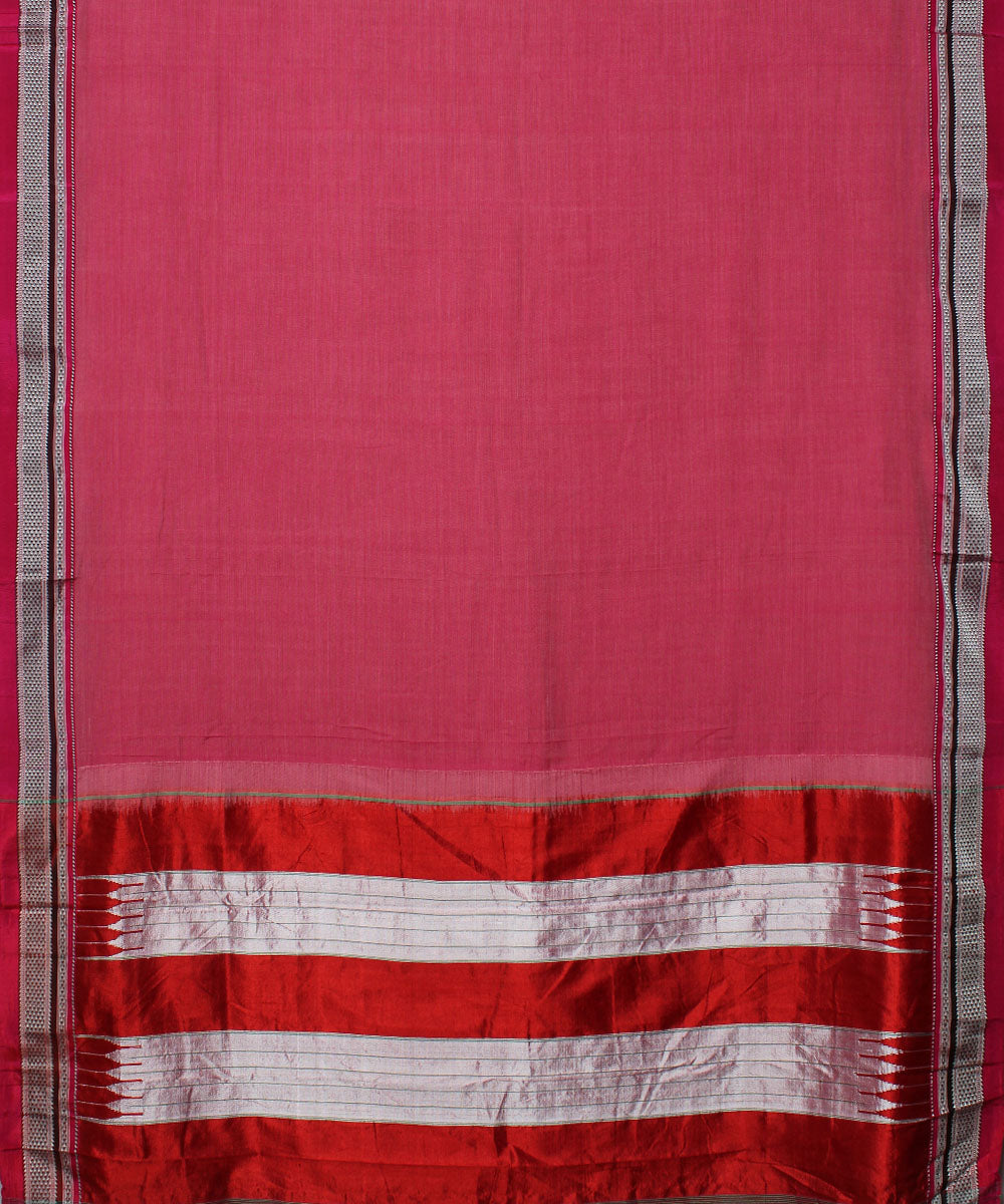 Pink red handwoven cotton art silk chikki paras border ilkal saree