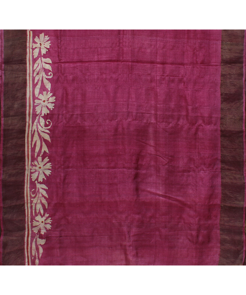 feel good in this purple mulberry silk hand painted batik saree from the tables of west bengal