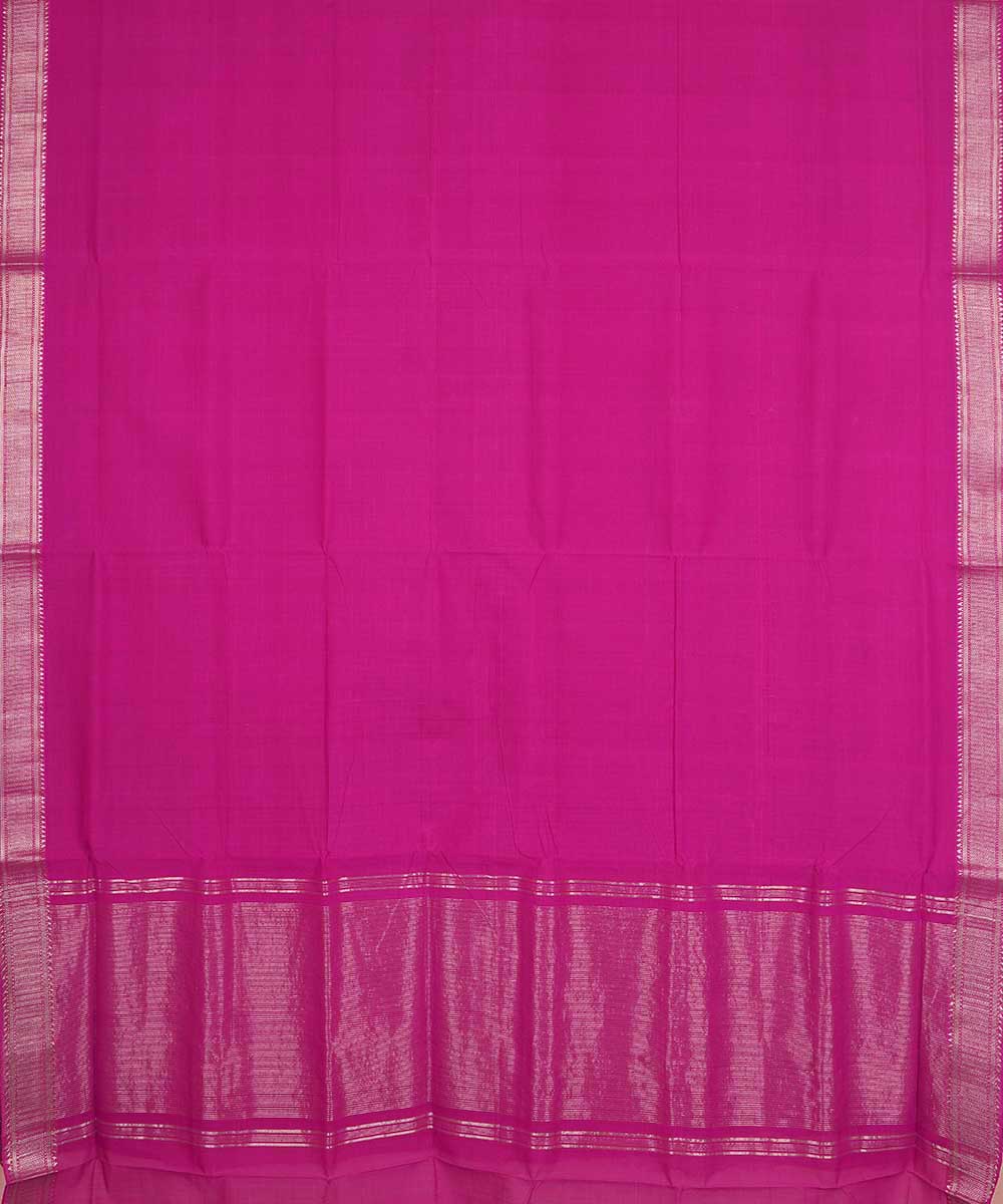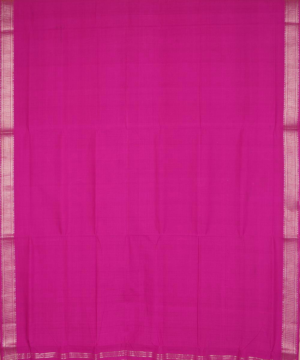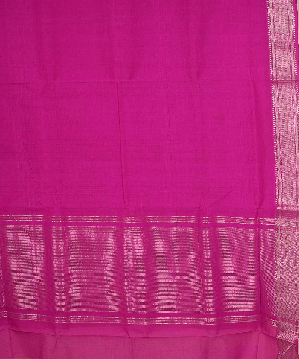 Purple pink silver big border cotton handwoven mangalagiri saree