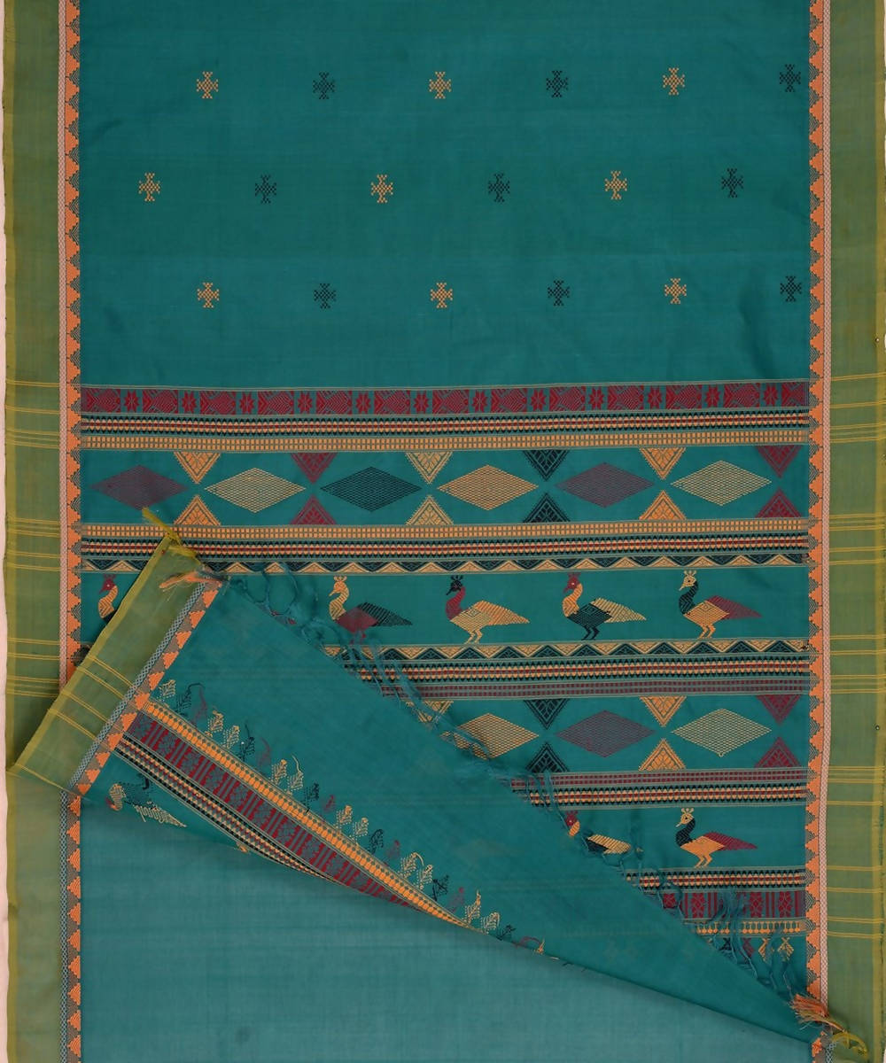 Rama green kanchi silkcotton saree with bomkai thread work pallu