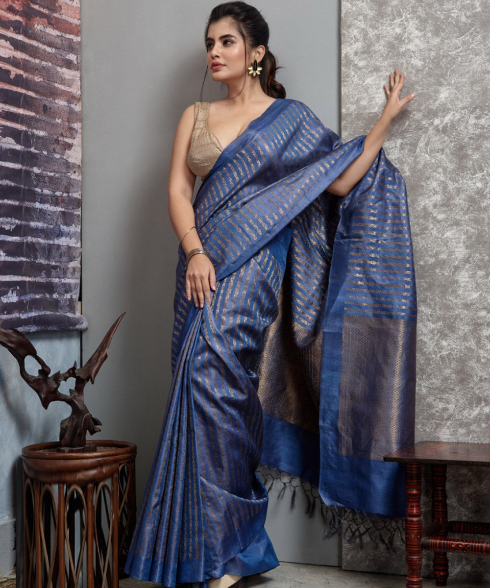 Royal blue handwoven chhatisgarh tussar silk saree