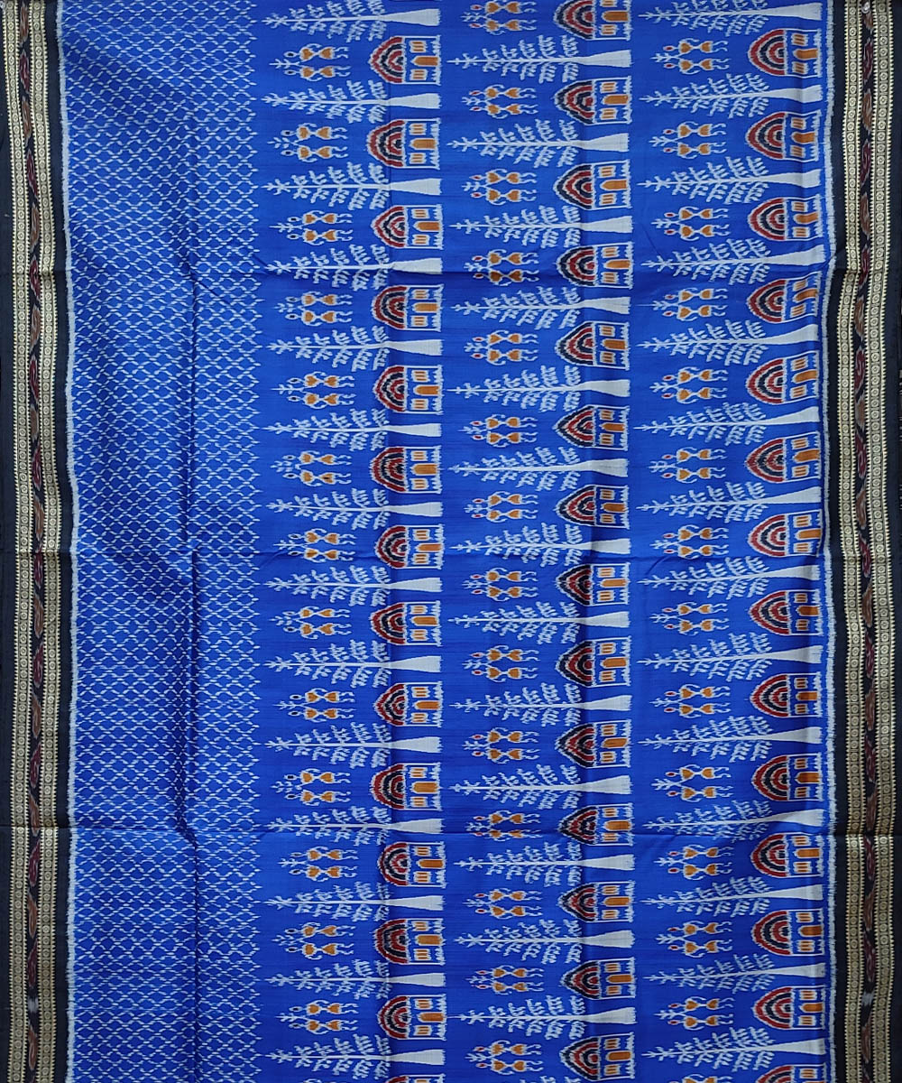 Sky blue black hand woven khandua silk saree