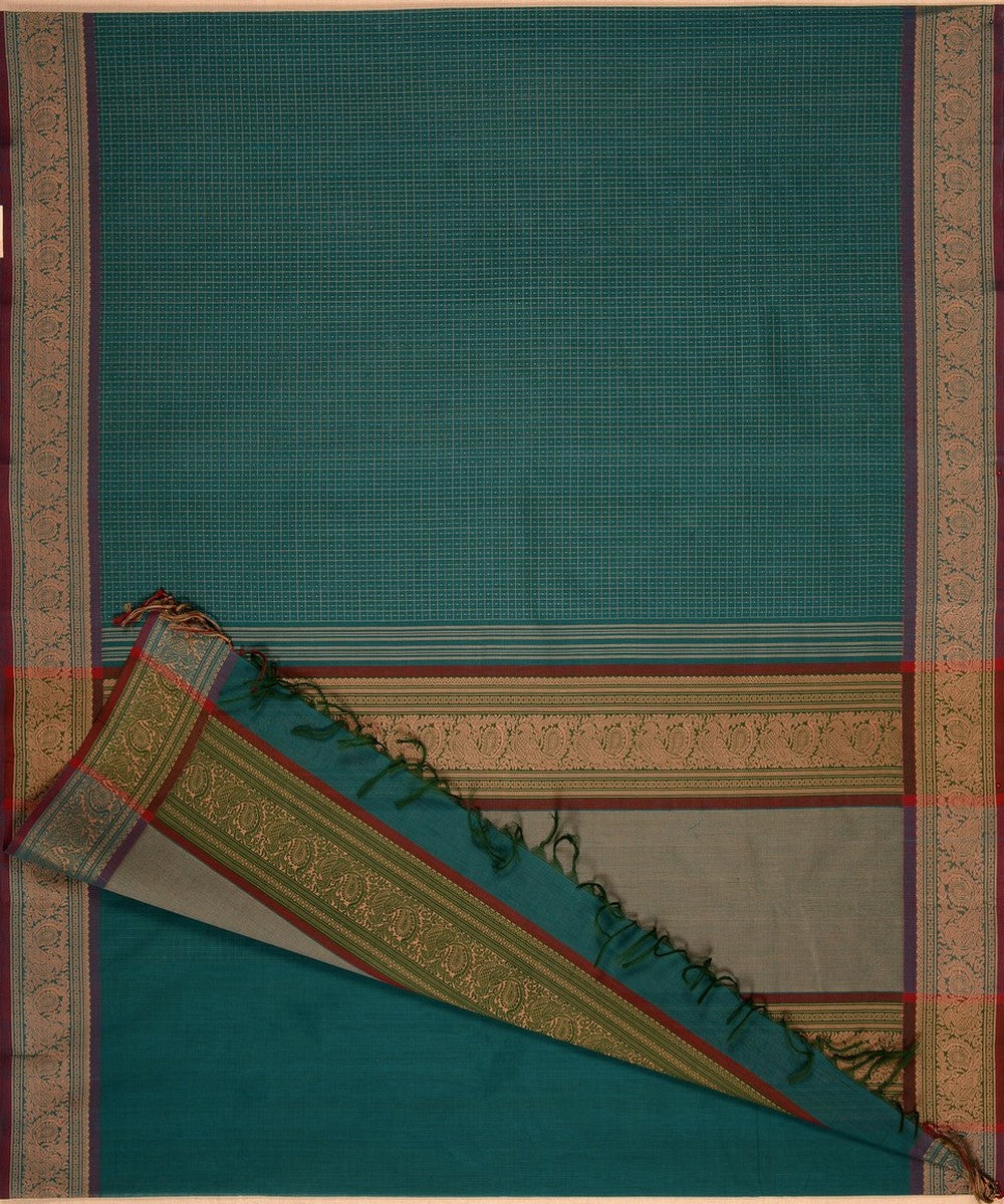 Turquoise muttu kattam checks handwoven kanchi cotton saree