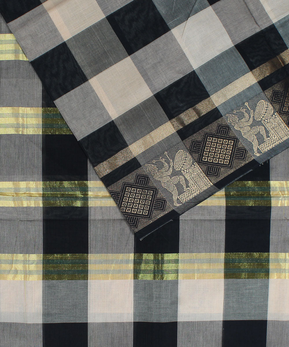 White and black checks cotton handloom chettinadu saree