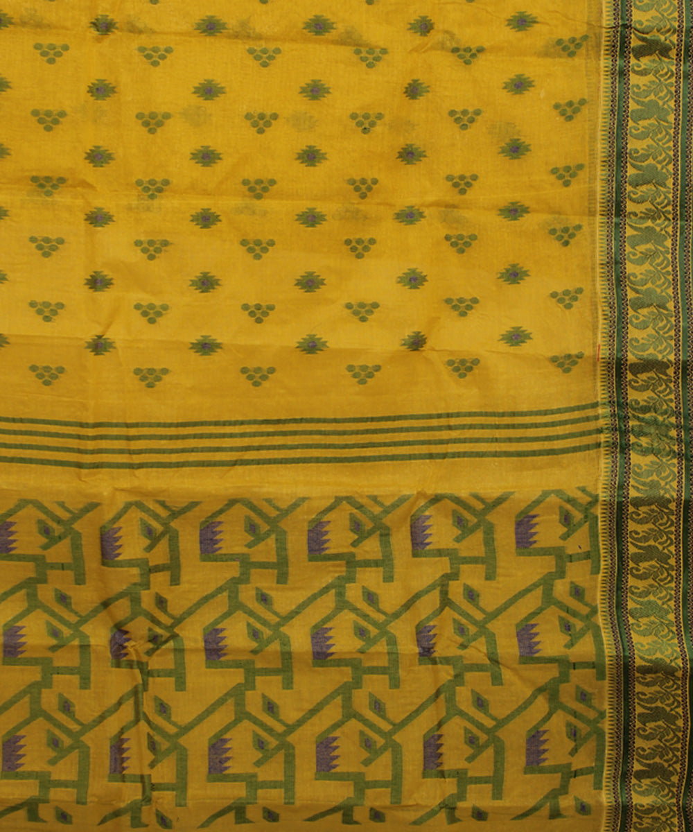 Yellow green cotton handloom bengal tangail saree