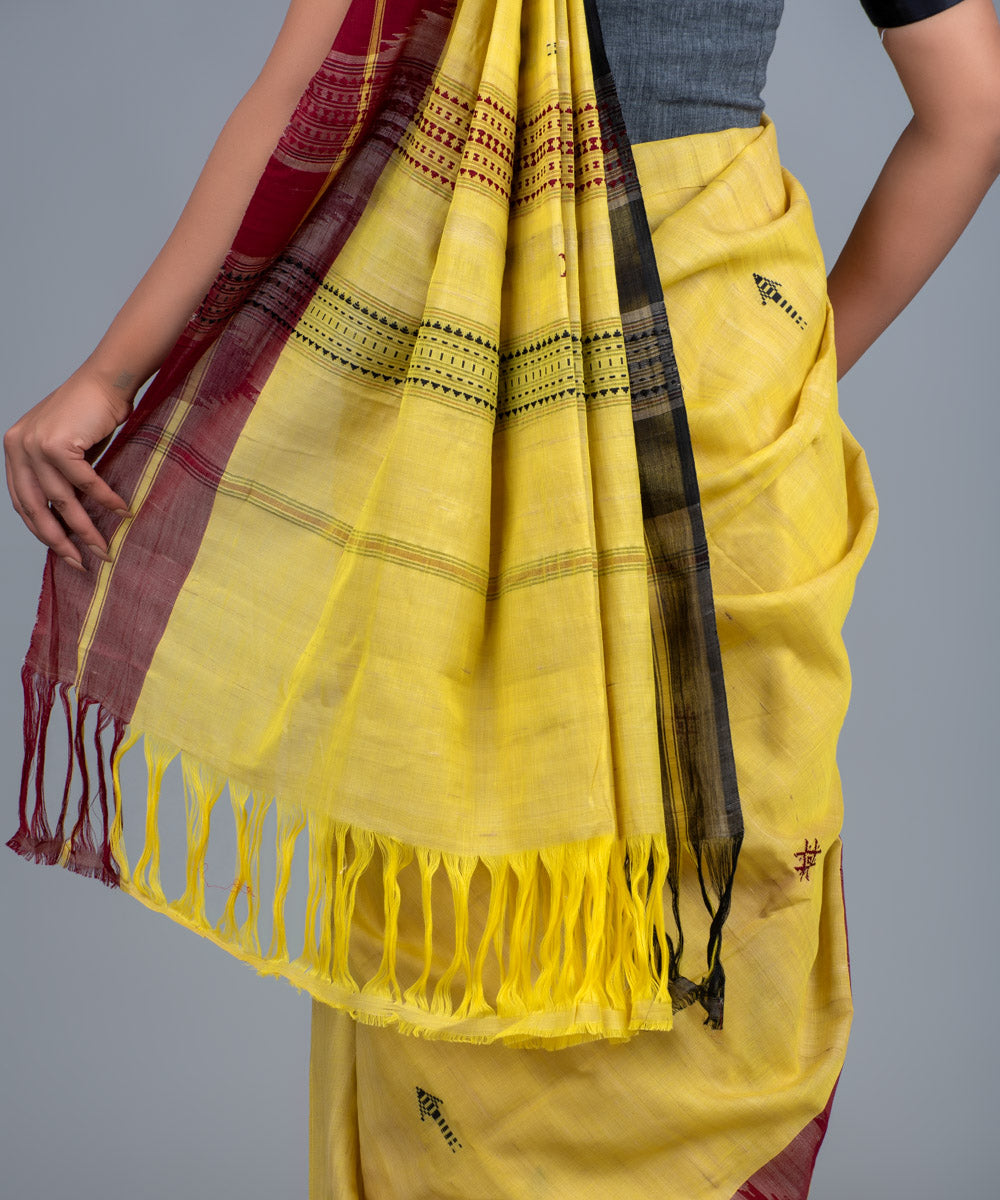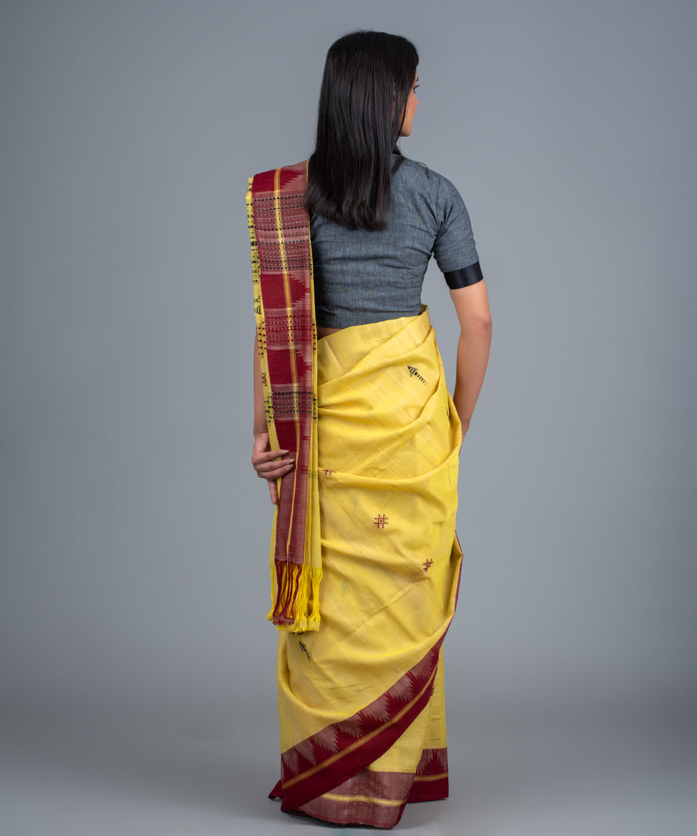 feel good in this yellow handwoven cotton kotpad saree from the looms of odisha