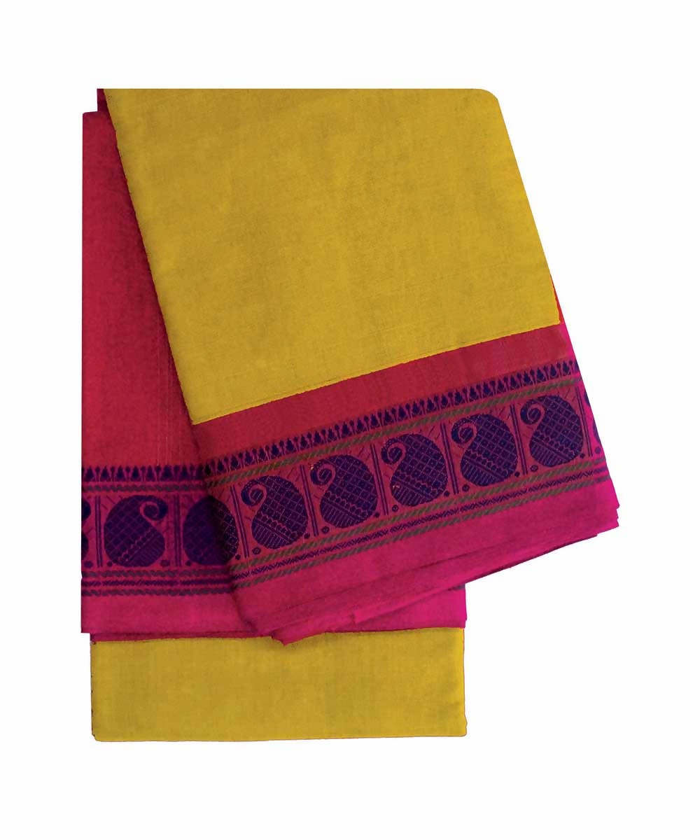 Yellow pink handwoven cotton kanchi saree
