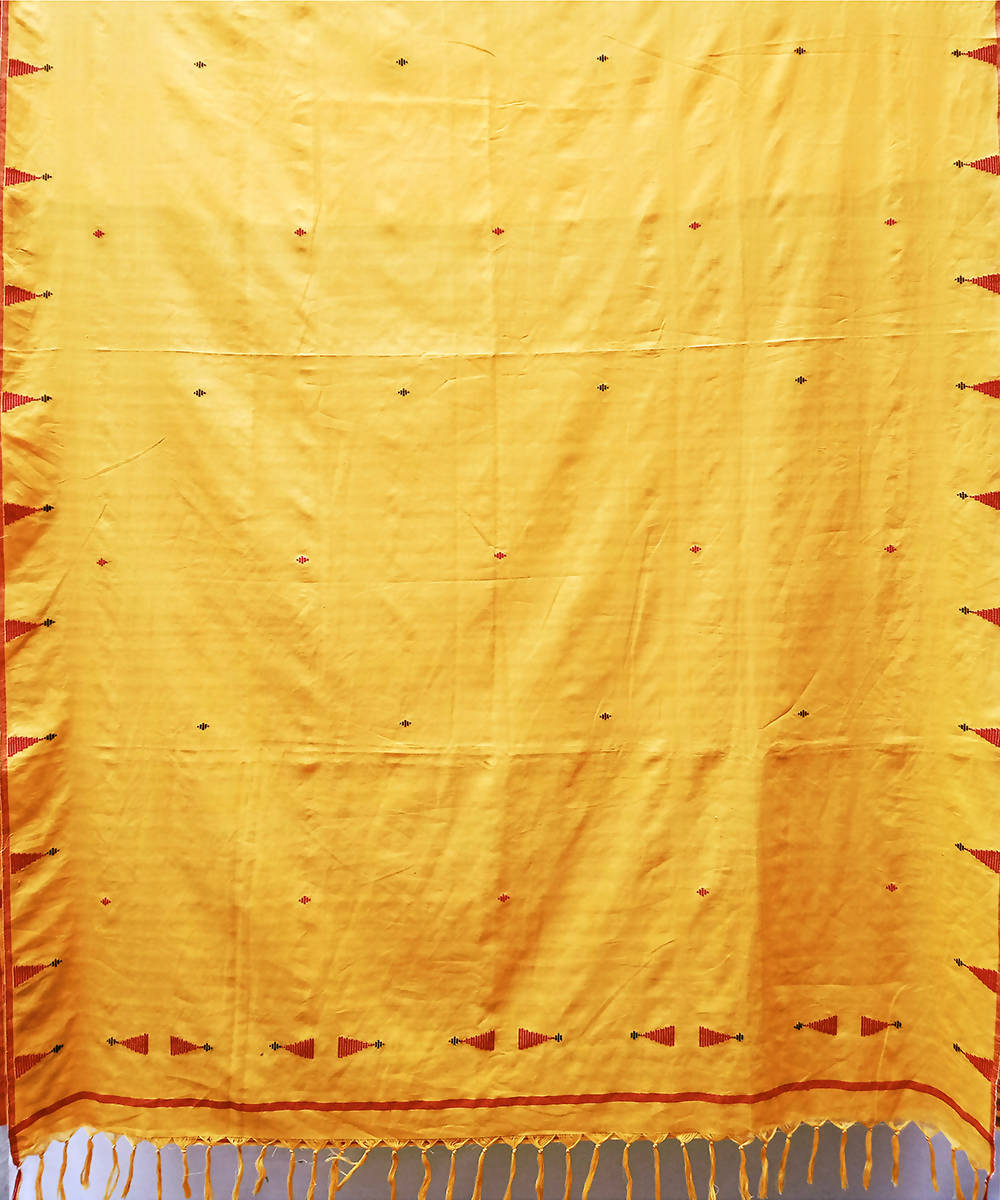 Yellow red handwoven extra weft cotton saree