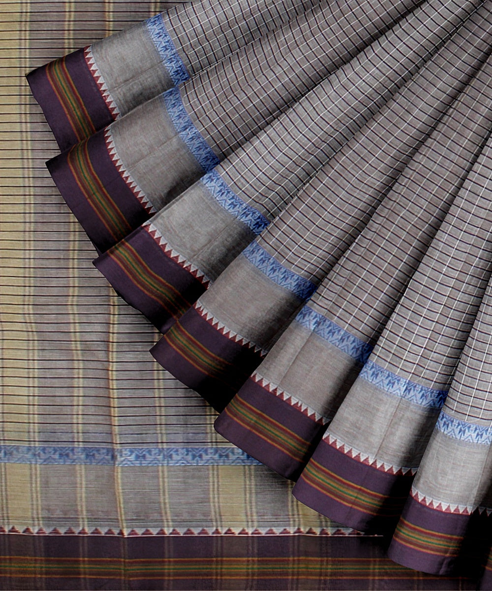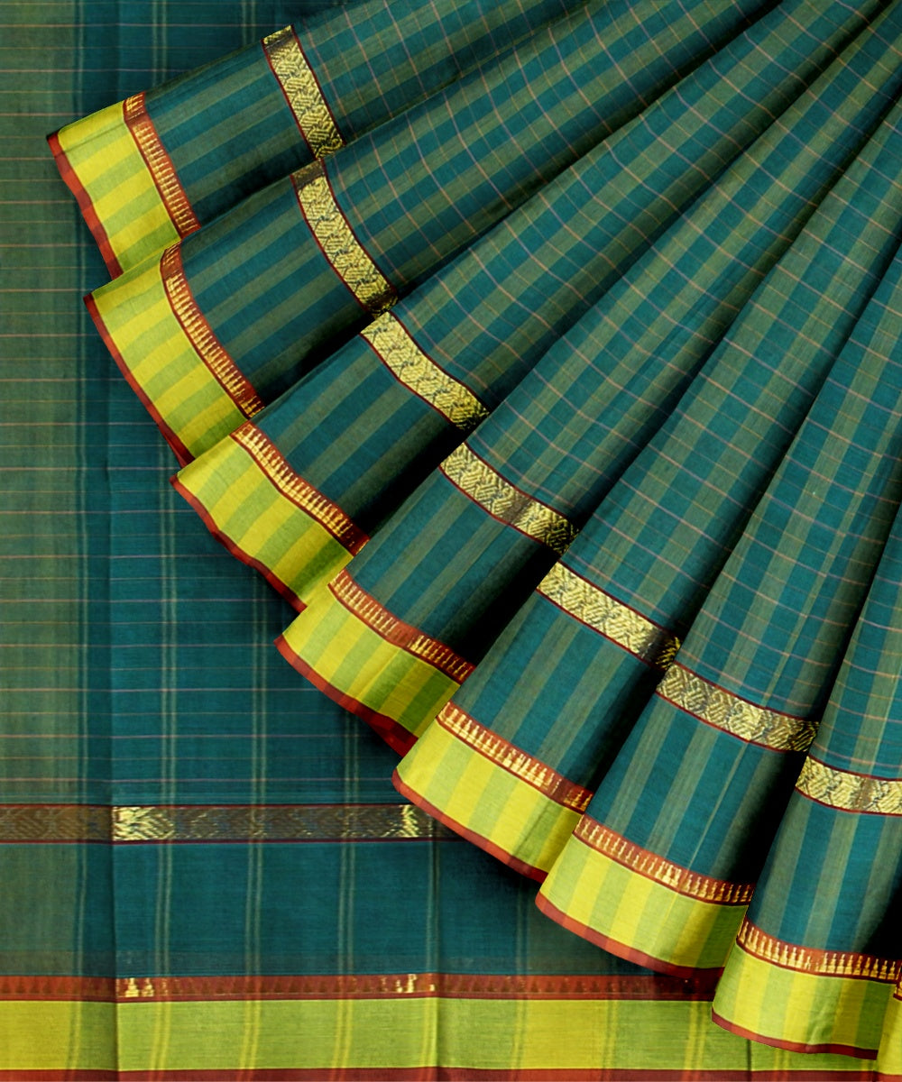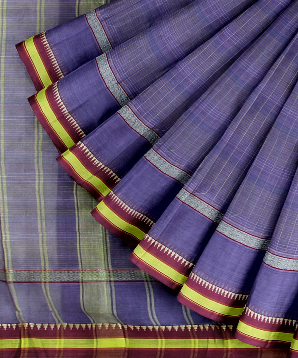 The Narayanpet sarees define comfort in simplicity through its handloom weaves. This GI tagged craft variety is woven at the clusters of Narayanpete in Andhra Pradesh. With a strong influence from the Maratha empire which started this tradition back in 1630, the identifying features for the saree are the simple striped borders and pallu with variations in the checks of the saree body. Choose to drape a narayanapete saree in cotton for formal work and silk sarees for festive celebrations.