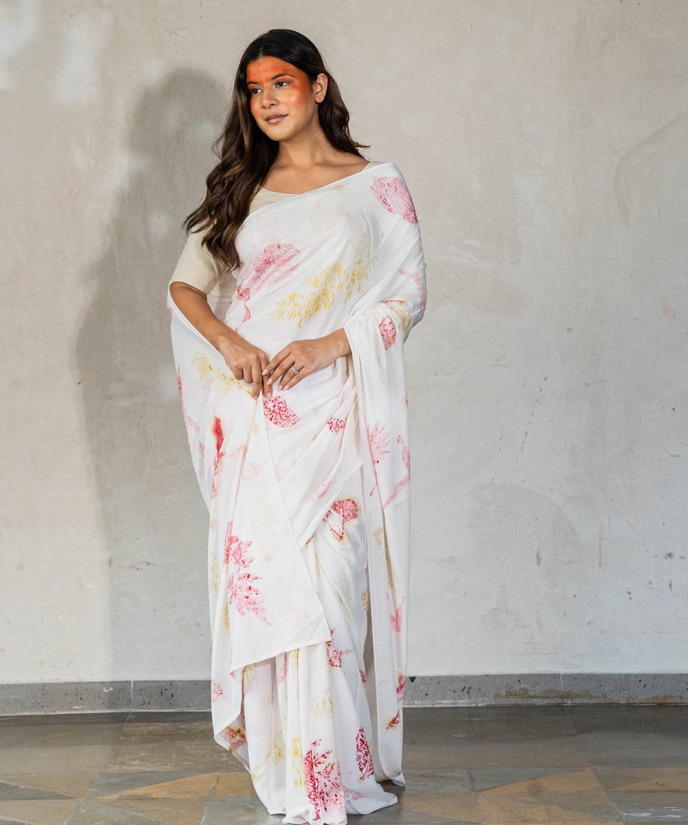 NCrafted, a designer brand of Roopkaliz, has been working since 1994 with 40 clusters and 400 women artisans across the country with an aim to provide continuous work, extend marketing support, and to provide sustainable livelihood to women artisans who create the collection. The philosophy of NCrafted is that every woman wants something that she desires and deserves to look different and special. It is with this objective that NCrafted is committed to bringing 30 indigenous art forms into wearable dressing by creating a No-Repeat-Design Collection of Fabrics and Sustainable Bio-Print Sarees.