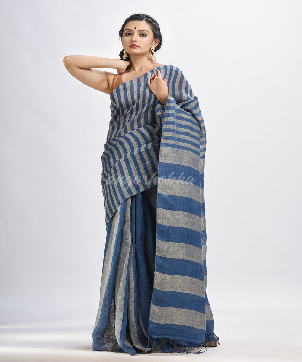 Blue handloom bengal linen saree