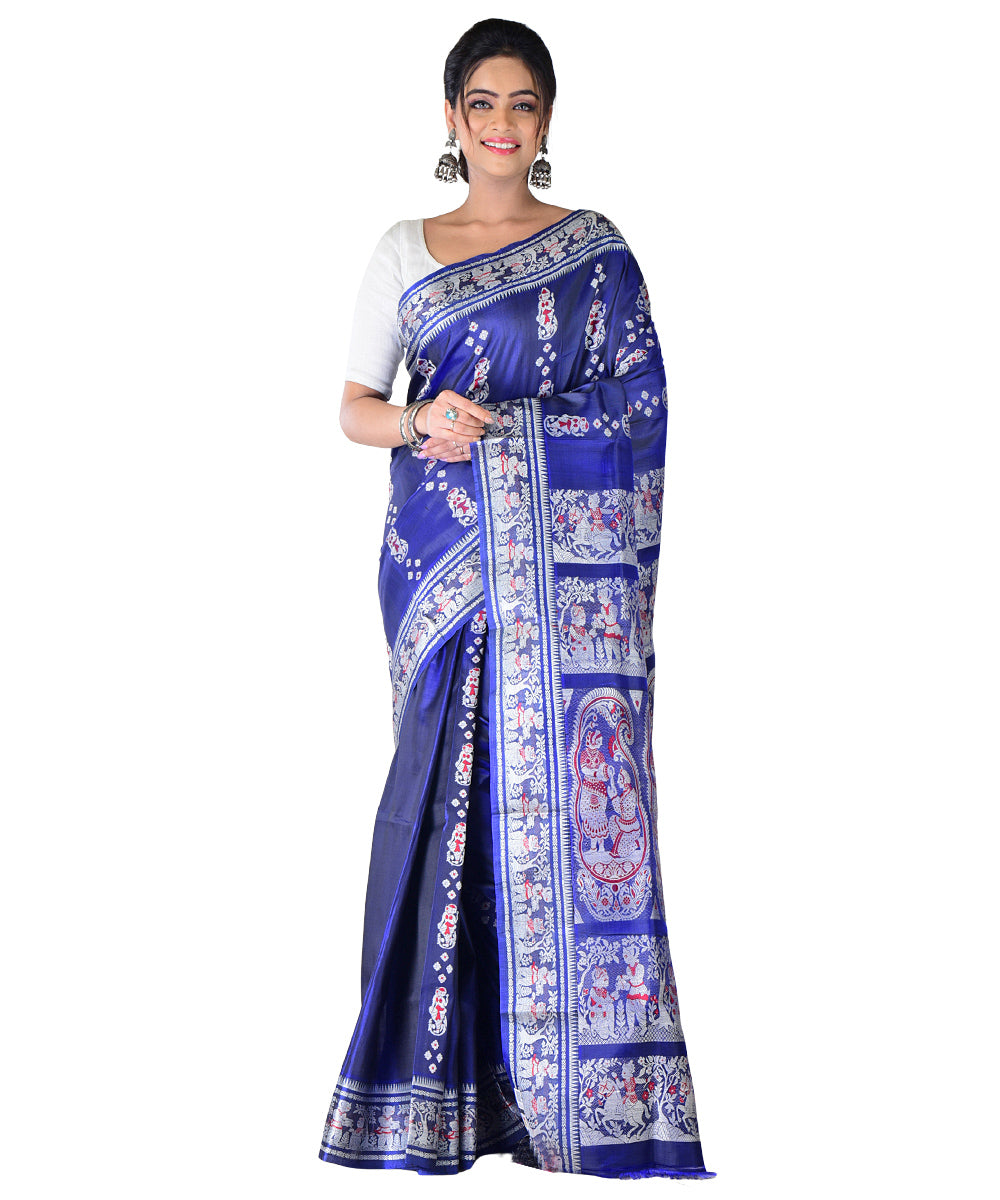 Navy blue handloom silk saree
