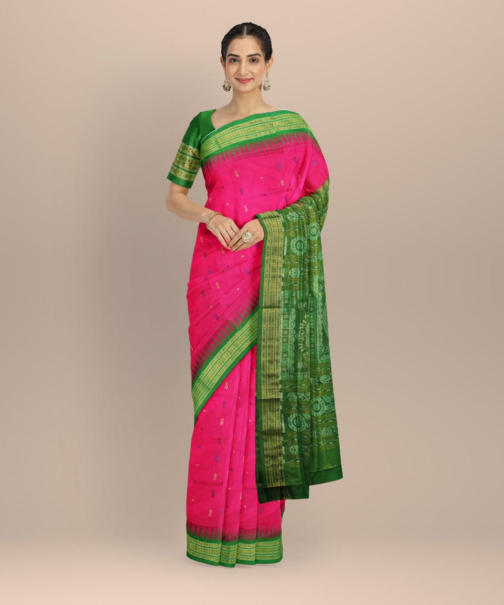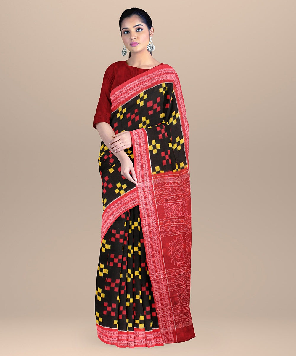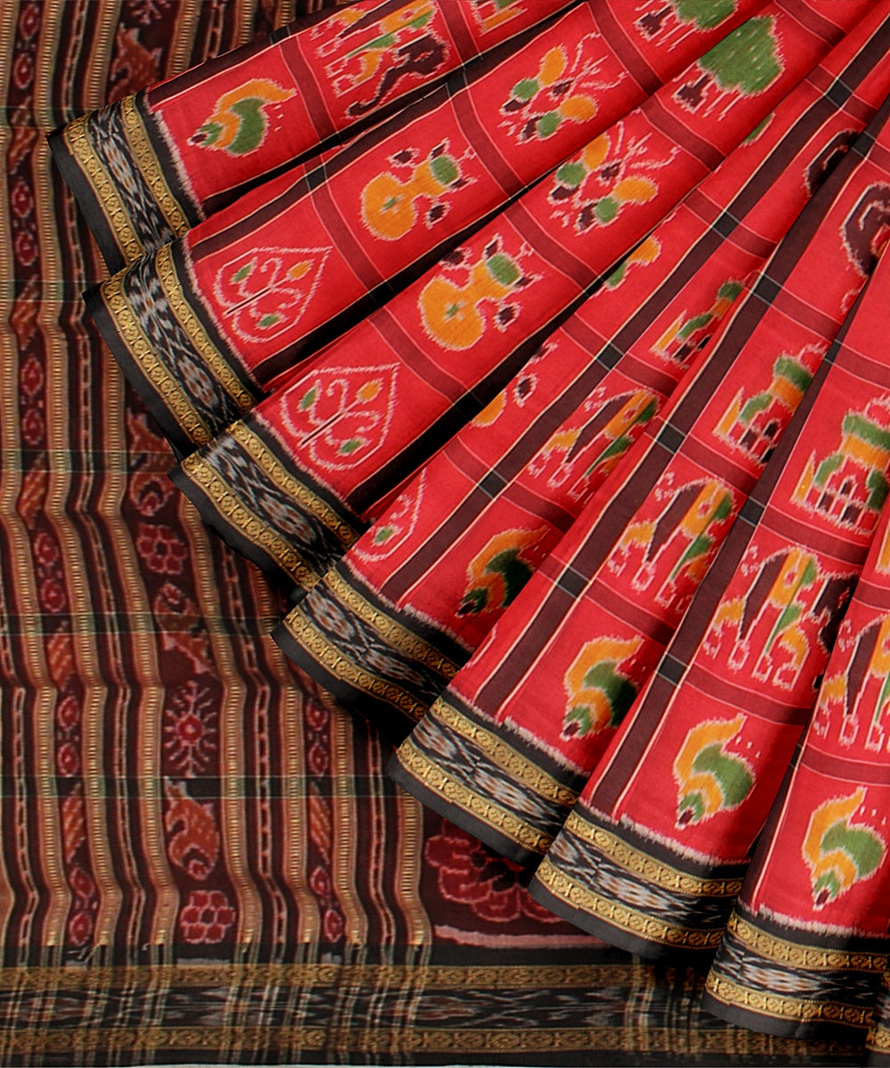 Featuring traditional motifs like the chakra and the shankha, peacocks, and elephants, and ancient temple art, the Sambalpuri weave captures the diversity of Odisha.