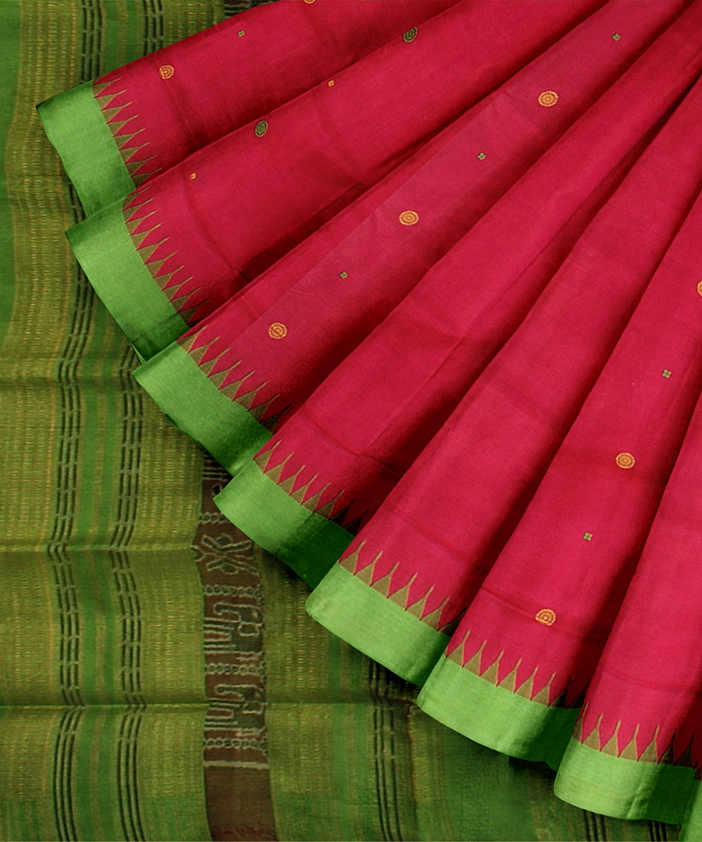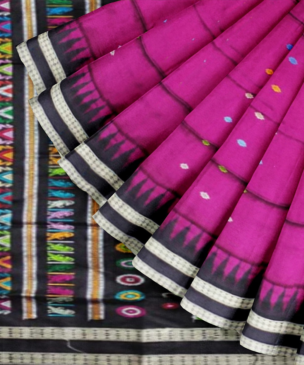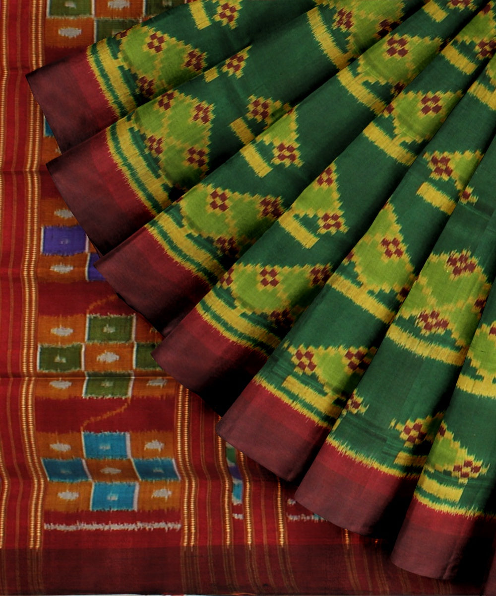 Featuring traditional motifs like the chakra and the shankha, peacocks, and elephants, and ancient temple art, the Sambalpuri weave captures the diversity of Odisha.