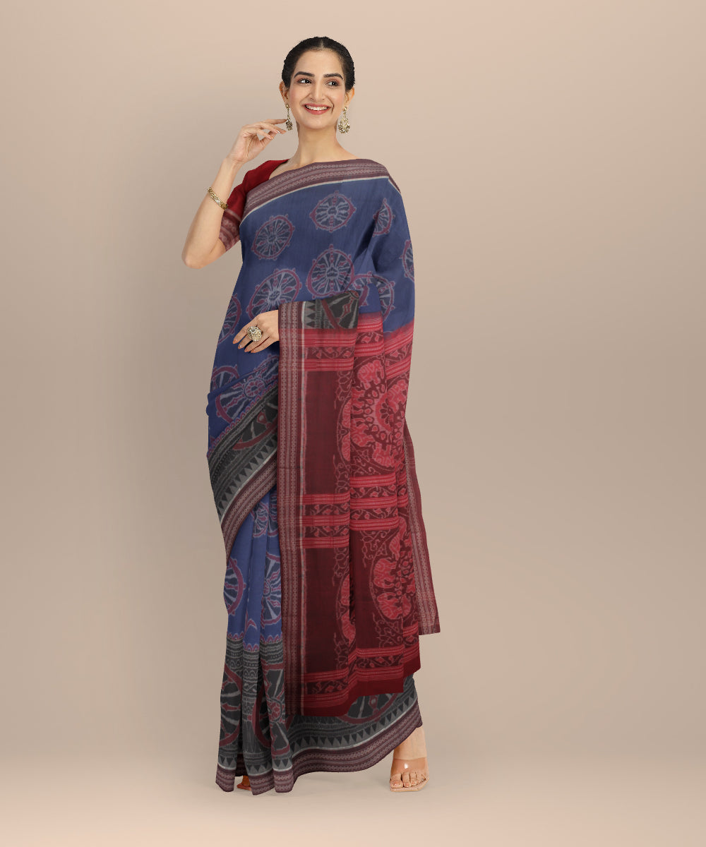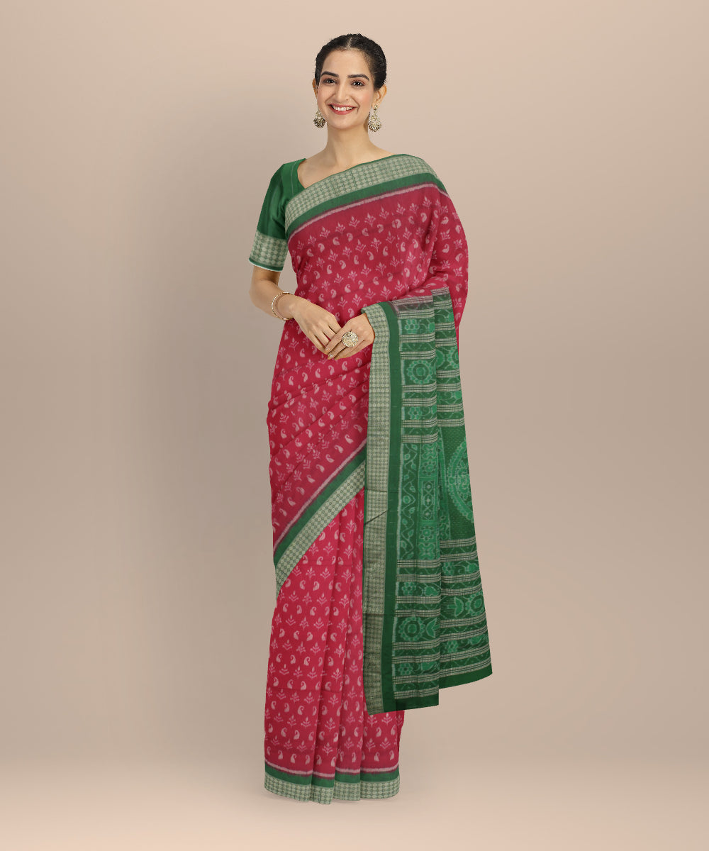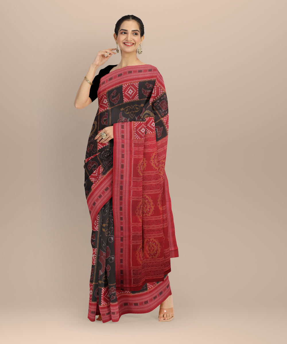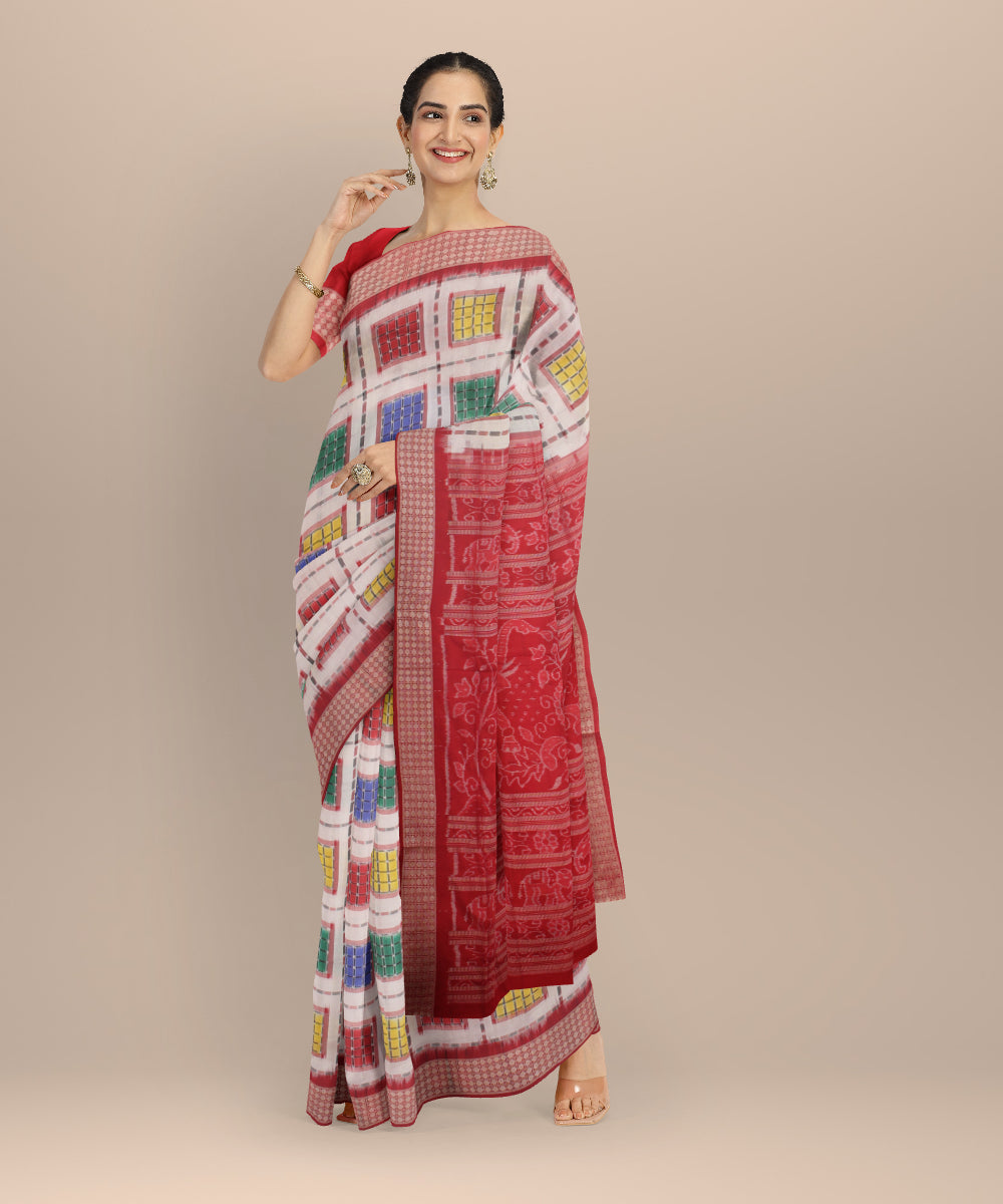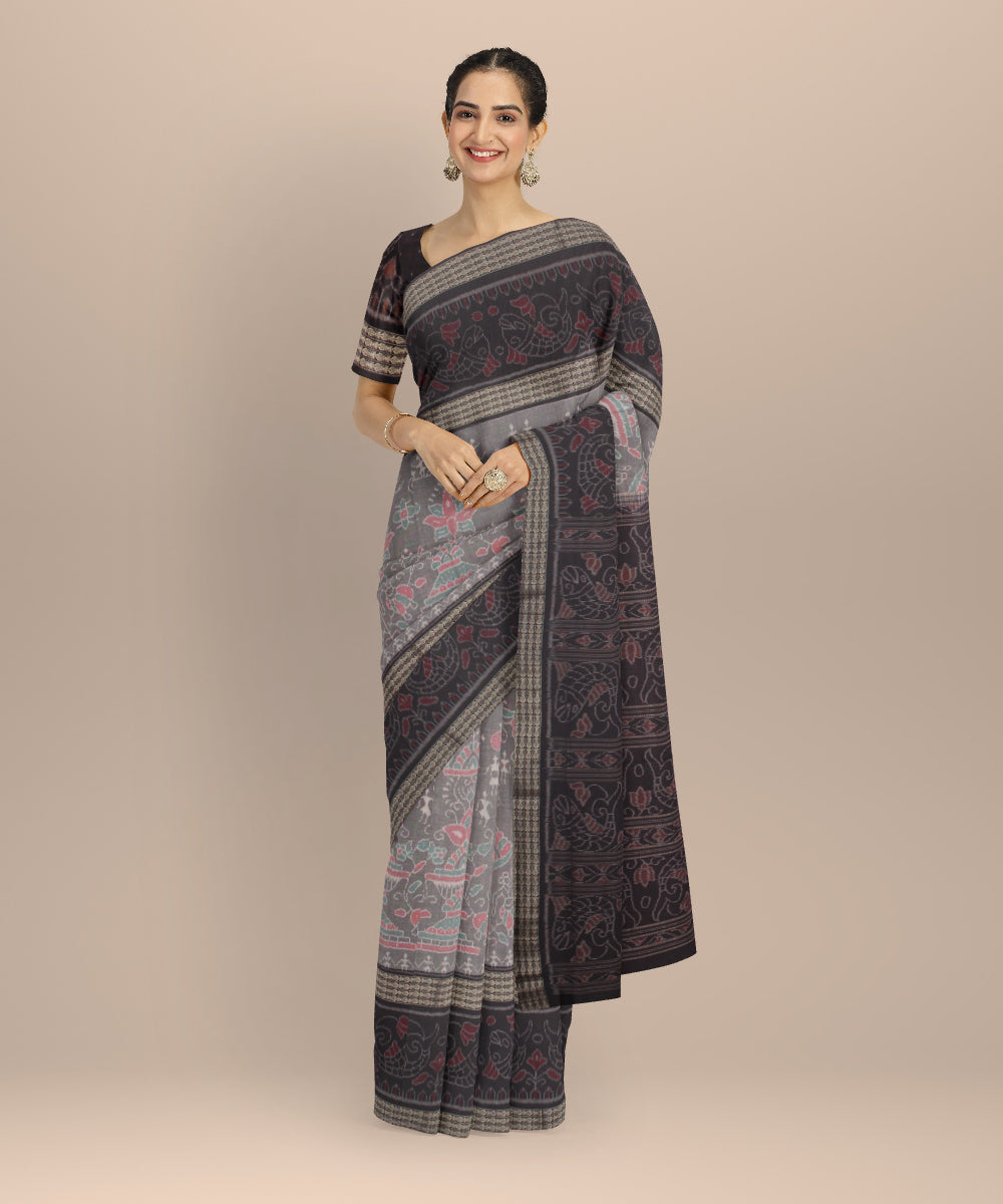 Featuring traditional motifs like the chakra and the shankha, peacocks, and elephants, and ancient temple art, the Sambalpuri weave captures the diversity of Odisha.