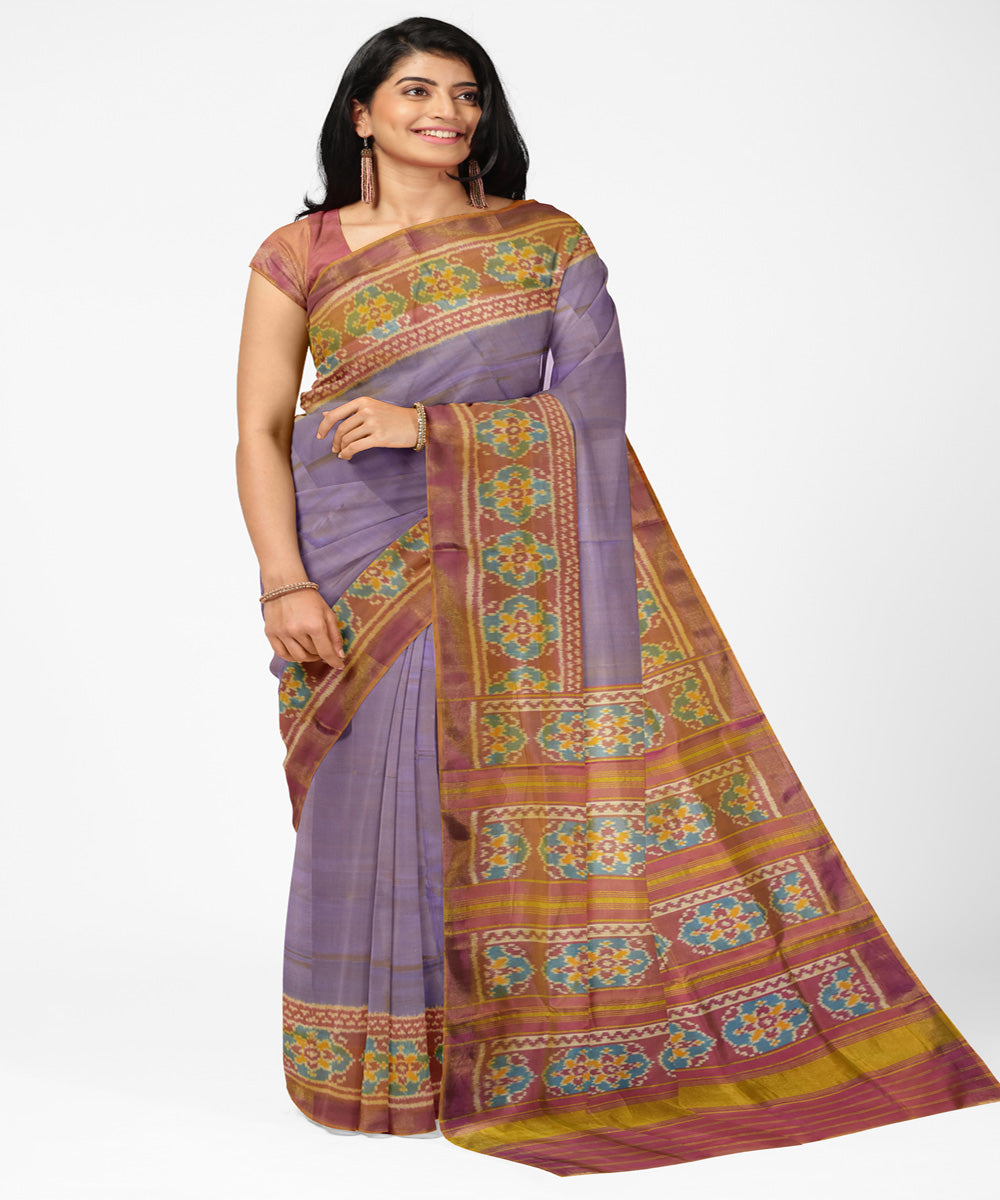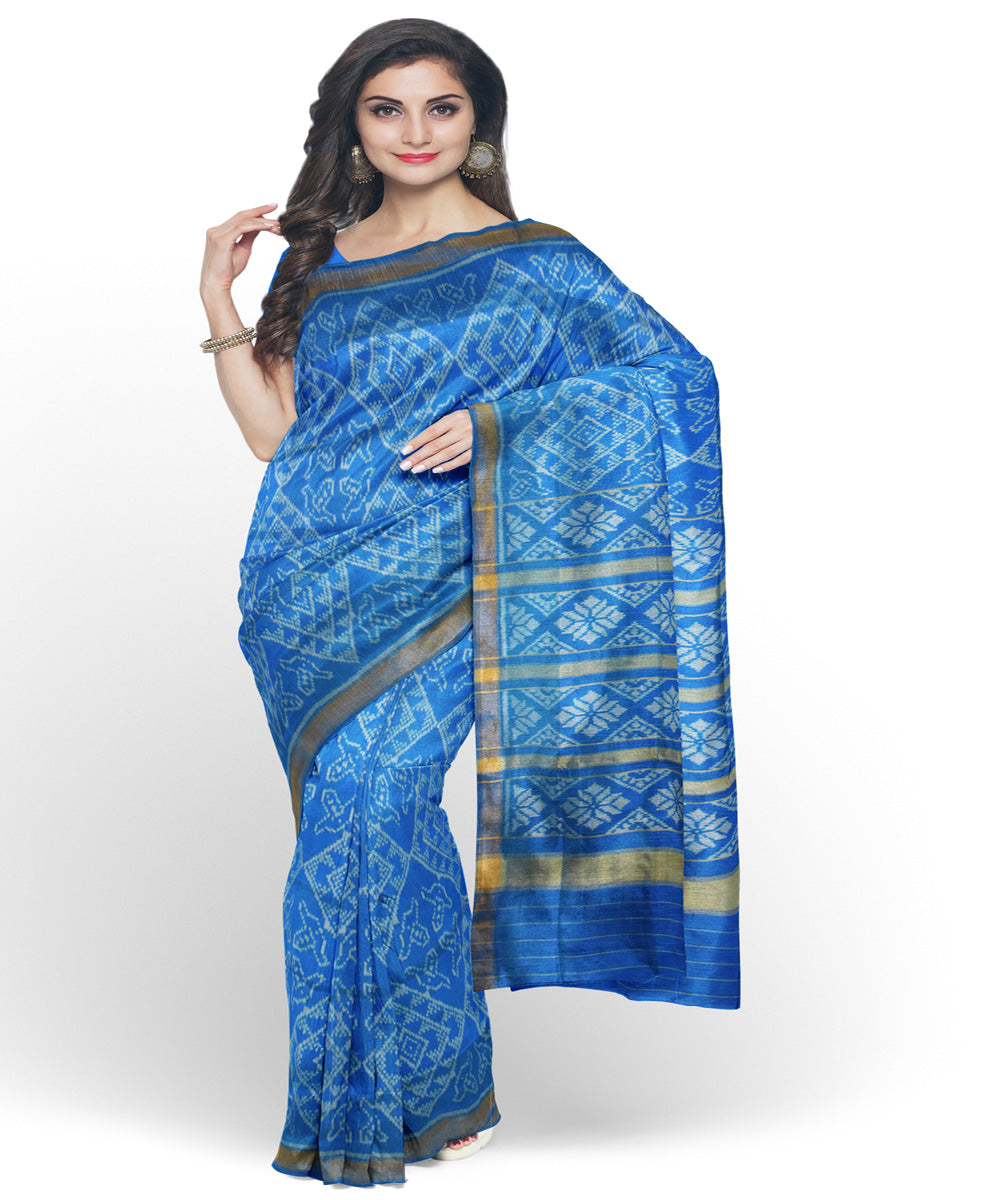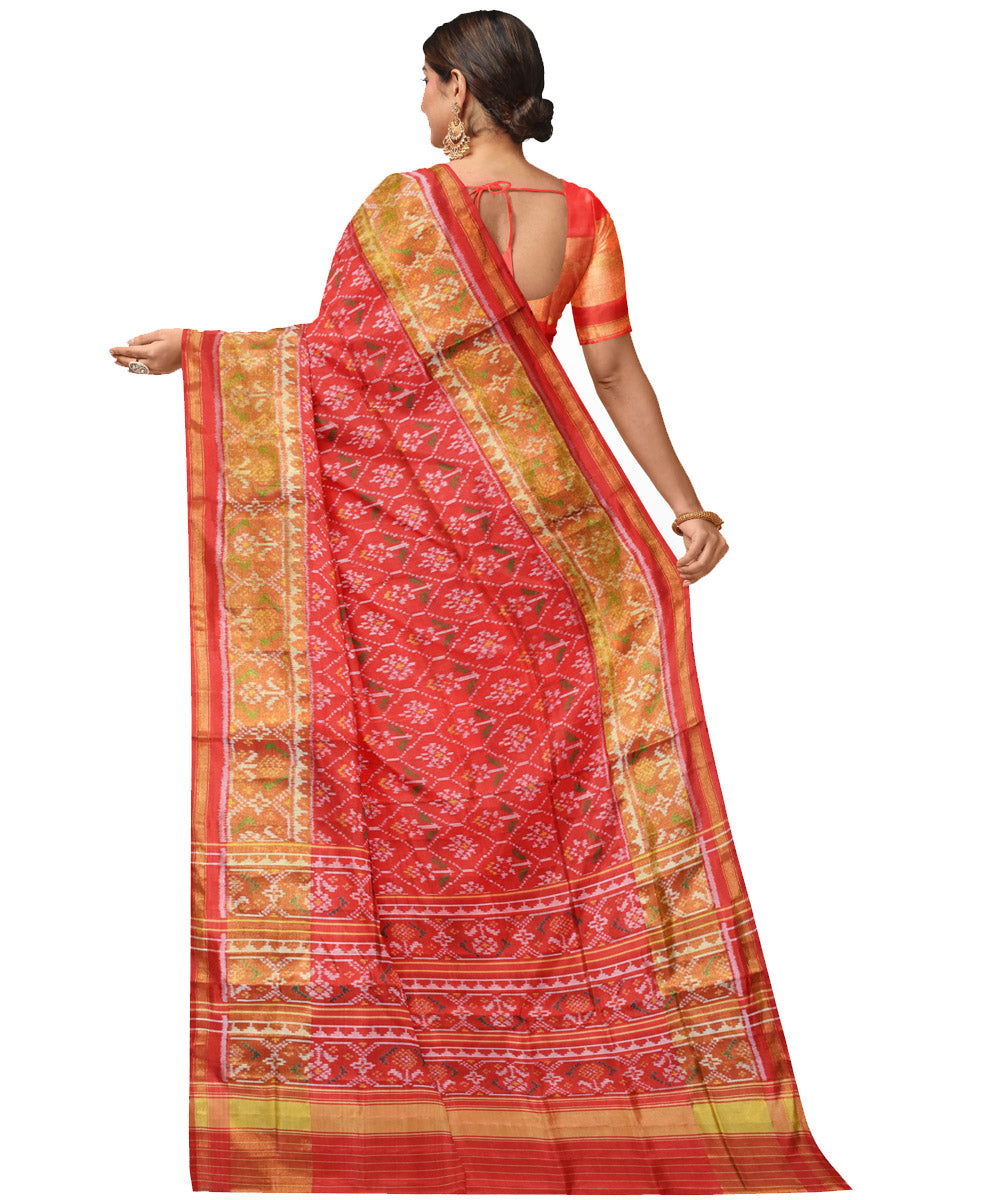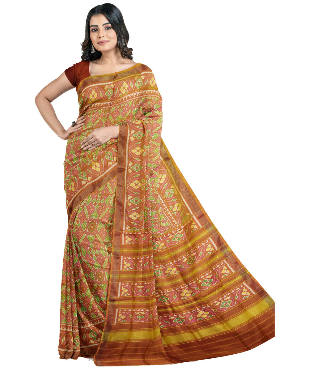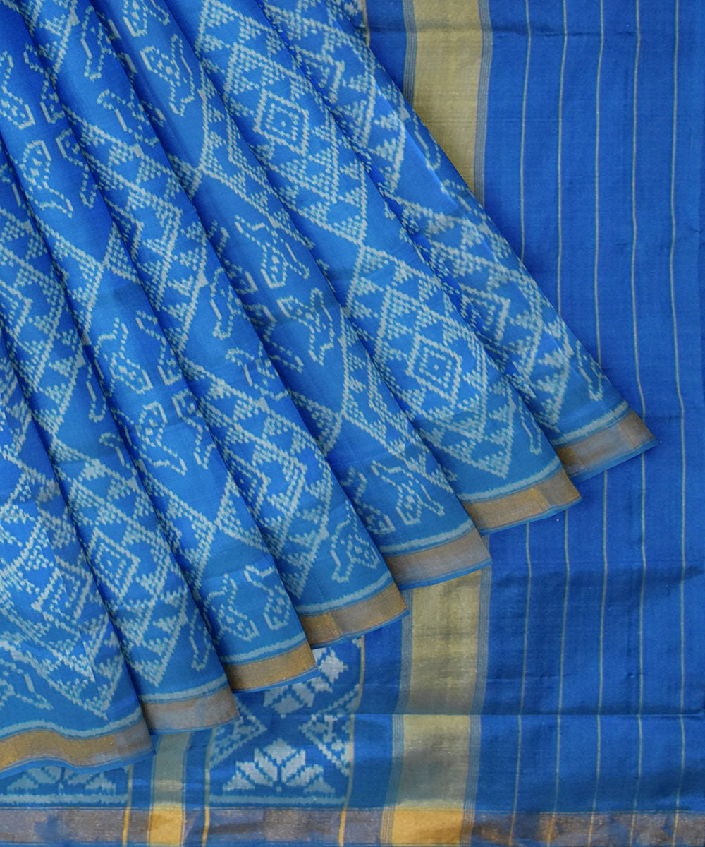 Sanskruti Silks is of Pankaj Makwana , a national award master weaver of the famous double ikkat patola from Gujarat and specialises in sarees and dupattas. Patola is a tie and dye technique of dyeing and weaving similar to Pochampally and Sambalpur Ikkat and usually comes in silk. The border and pallu come with zari and the body is entirely woven in a geometrical pattern. Patola is usually expensive because of the fabric and also the dyeing and weaving process which is intricate and time consuming.The patterns and designs of patola are very distinct. The motifs used are usually traditional flowers, elephants, birds and dancing figures and come in bright colours.