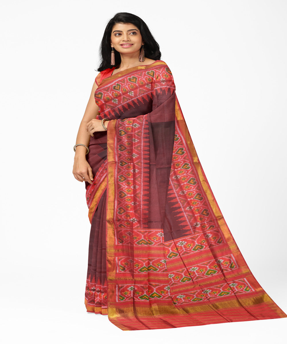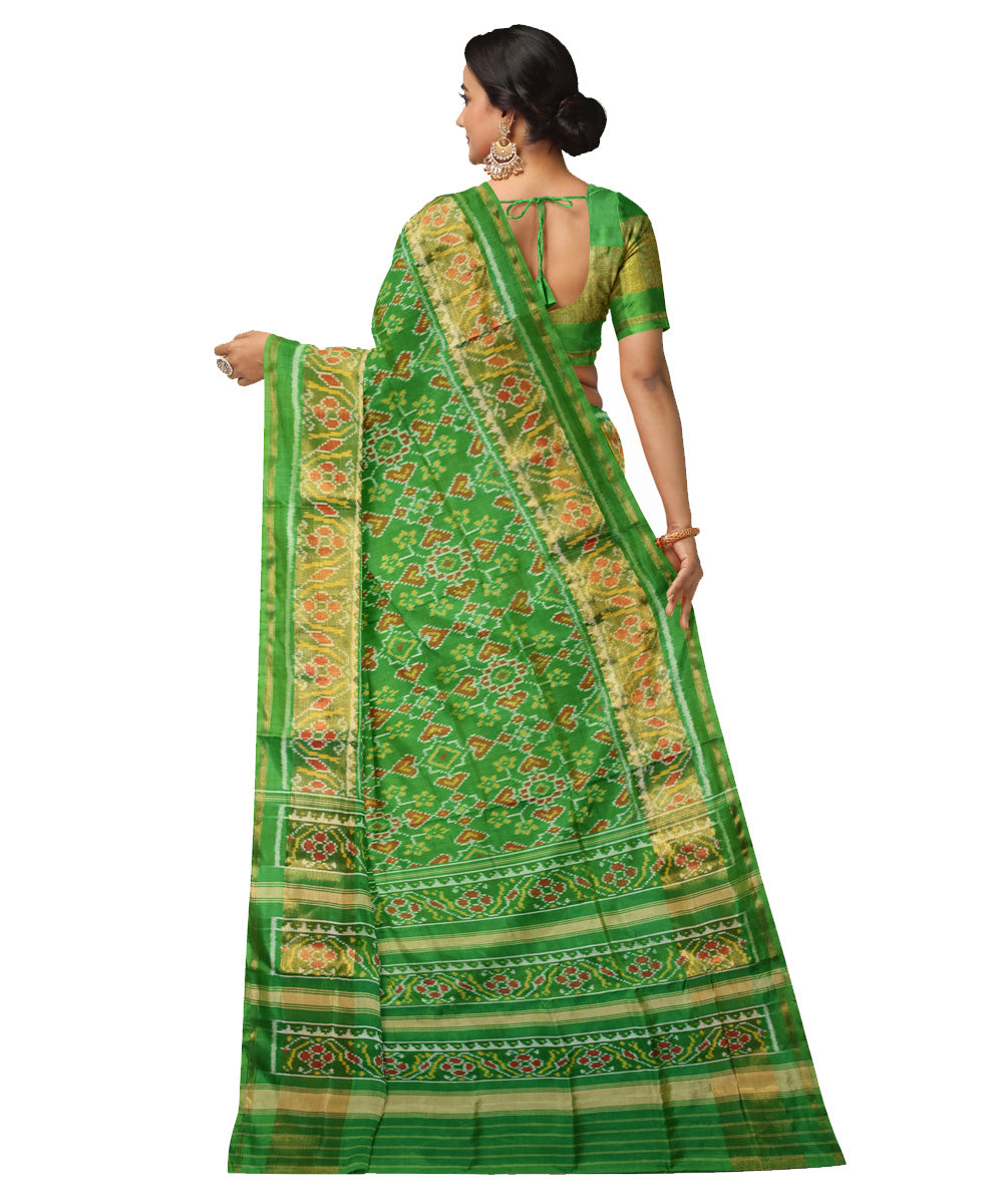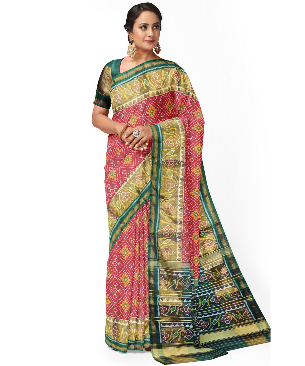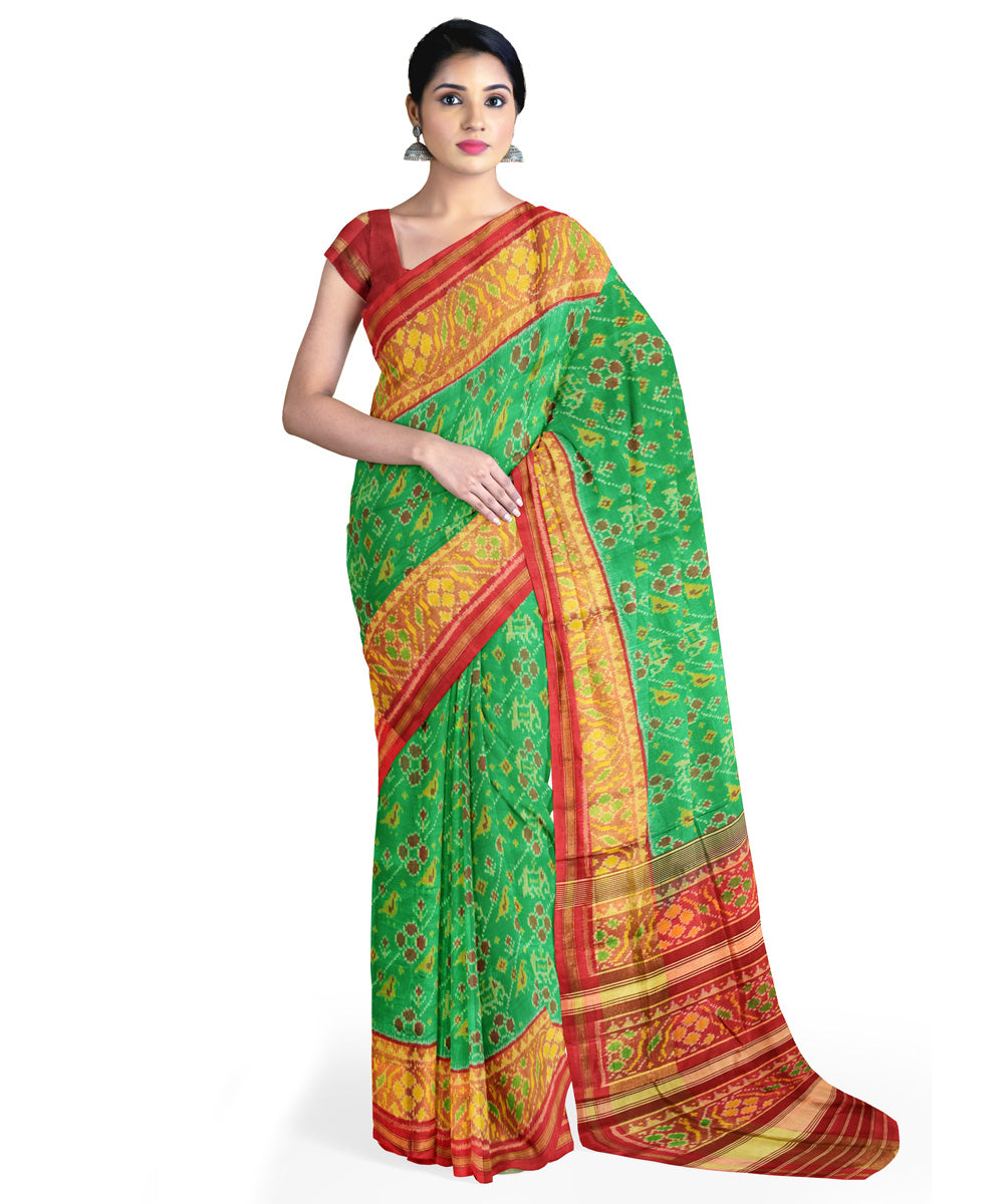 Sanskruti Silks is of Pankaj Makwana , a national award master weaver of the famous double ikkat patola from Gujarat and specialises in sarees and dupattas. Patola is a tie and dye technique of dyeing and weaving similar to Pochampally and Sambalpur Ikkat and usually comes in silk. The border and pallu come with zari and the body is entirely woven in a geometrical pattern. Patola is usually expensive because of the fabric and also the dyeing and weaving process which is intricate and time consuming.The patterns and designs of patola are very distinct. The motifs used are usually traditional flowers, elephants, birds and dancing figures and come in bright colours.