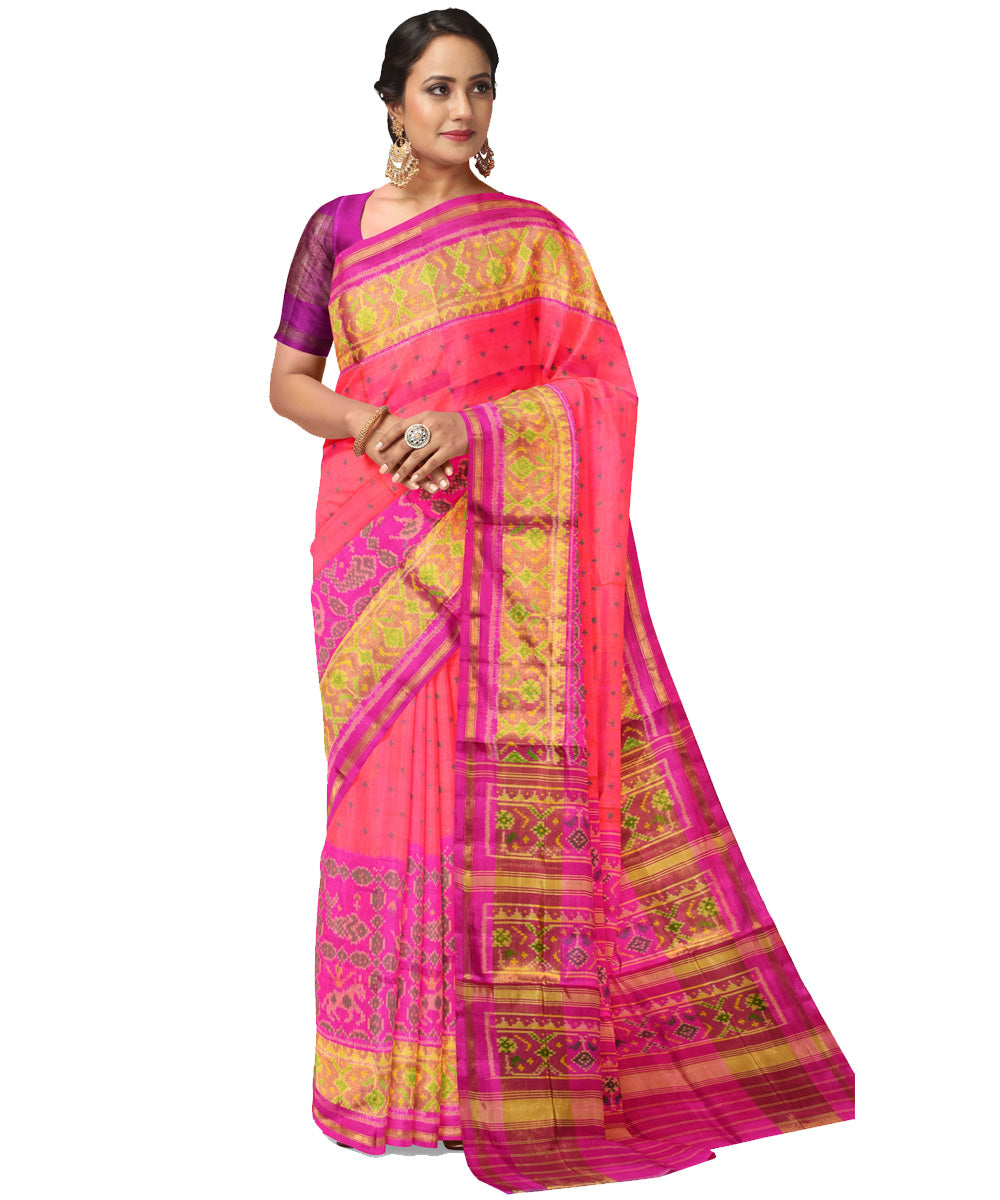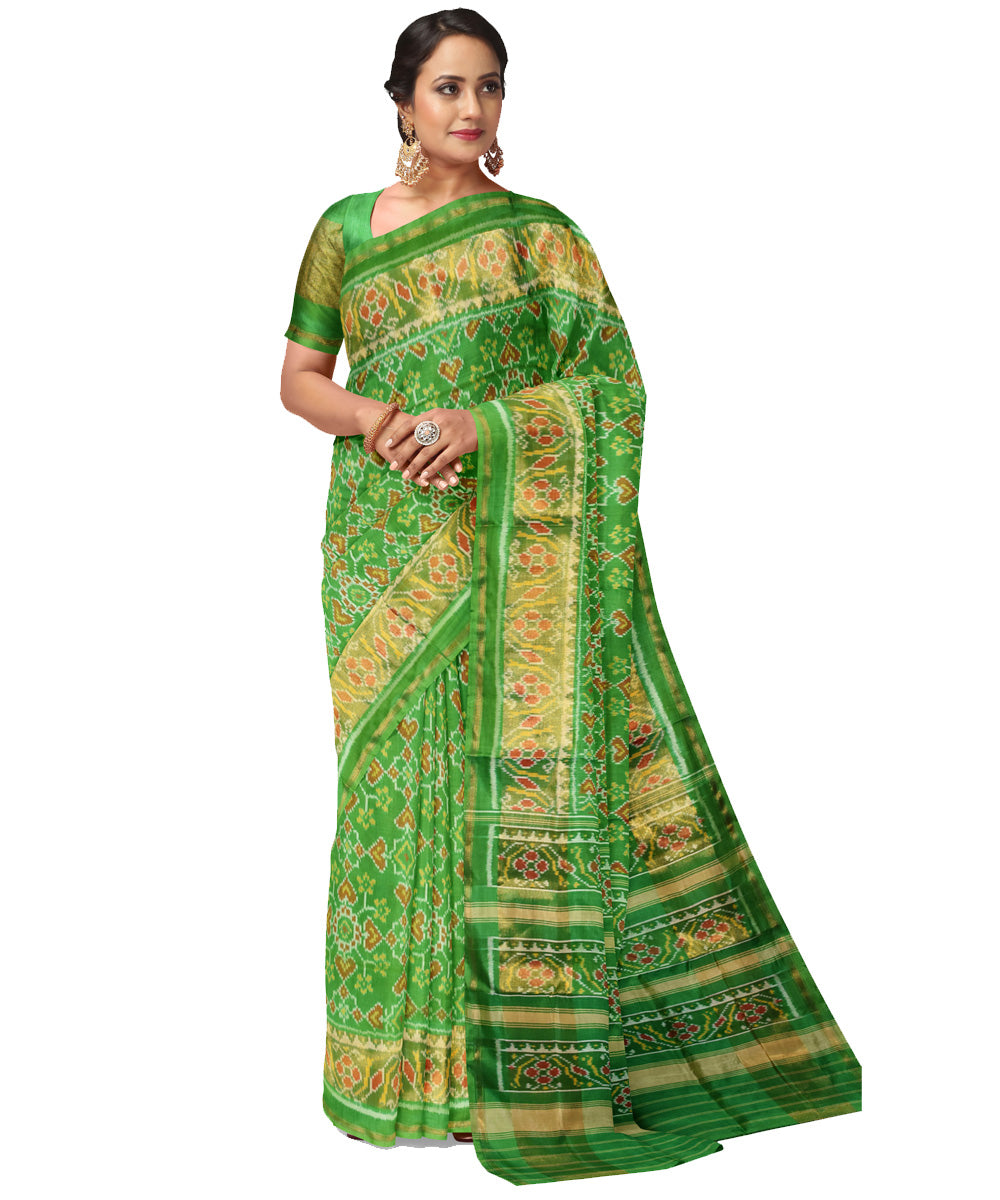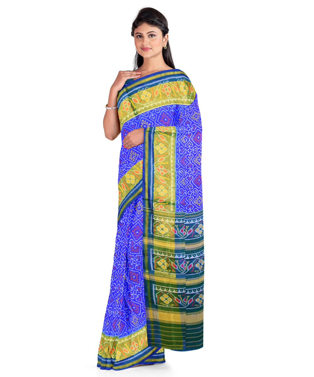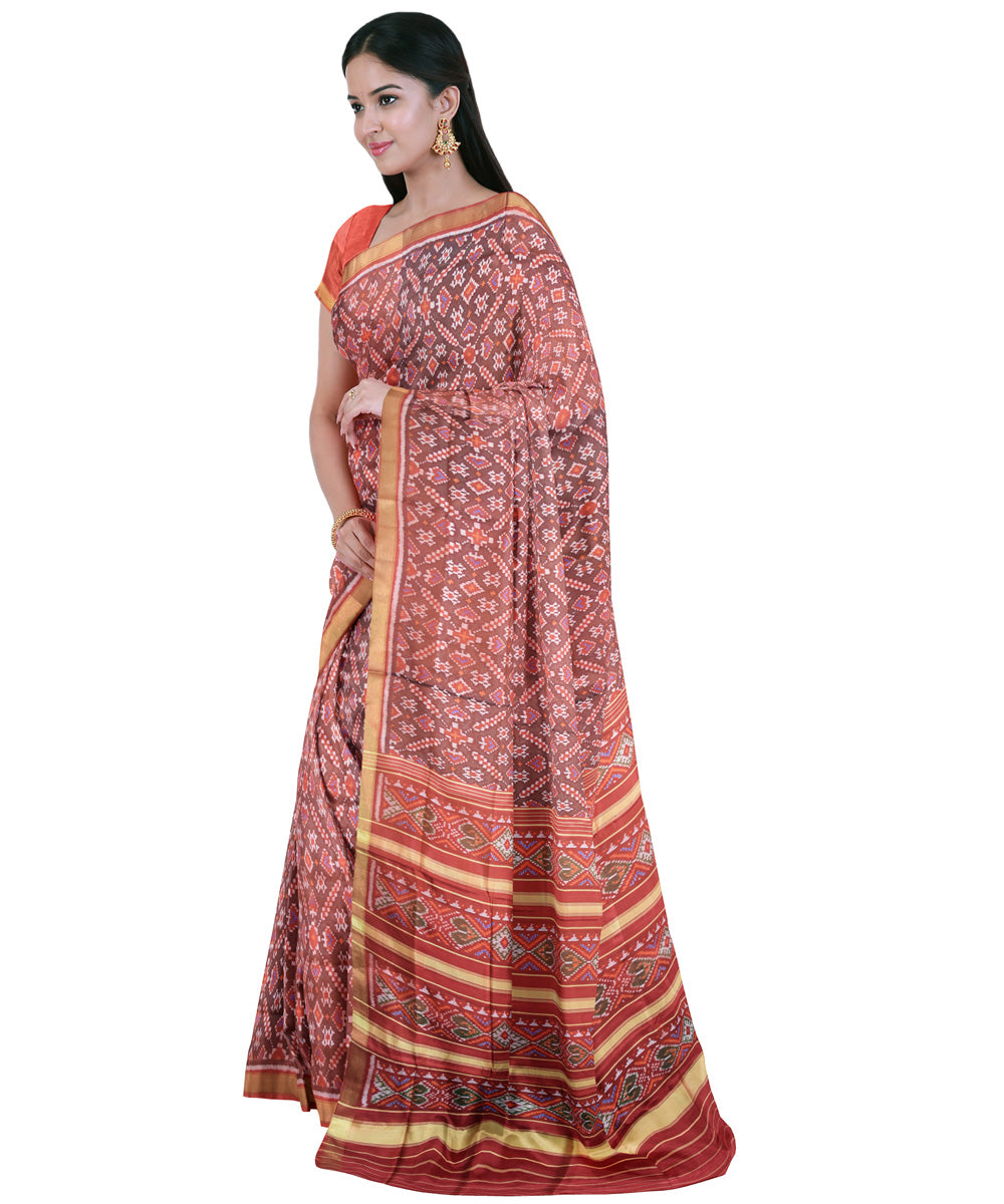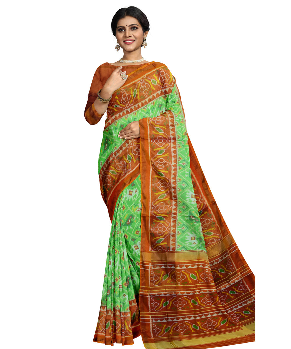Sanskruti Silks is of Pankaj Makwana , a national award master weaver of the famous double ikkat patola from Gujarat and specialises in sarees and dupattas. Patola is a tie and dye technique of dyeing and weaving similar to Pochampally and Sambalpur Ikkat and usually comes in silk. The border and pallu come with zari and the body is entirely woven in a geometrical pattern. Patola is usually expensive because of the fabric and also the dyeing and weaving process which is intricate and time consuming.The patterns and designs of patola are very distinct. The motifs used are usually traditional flowers, elephants, birds and dancing figures and come in bright colours.