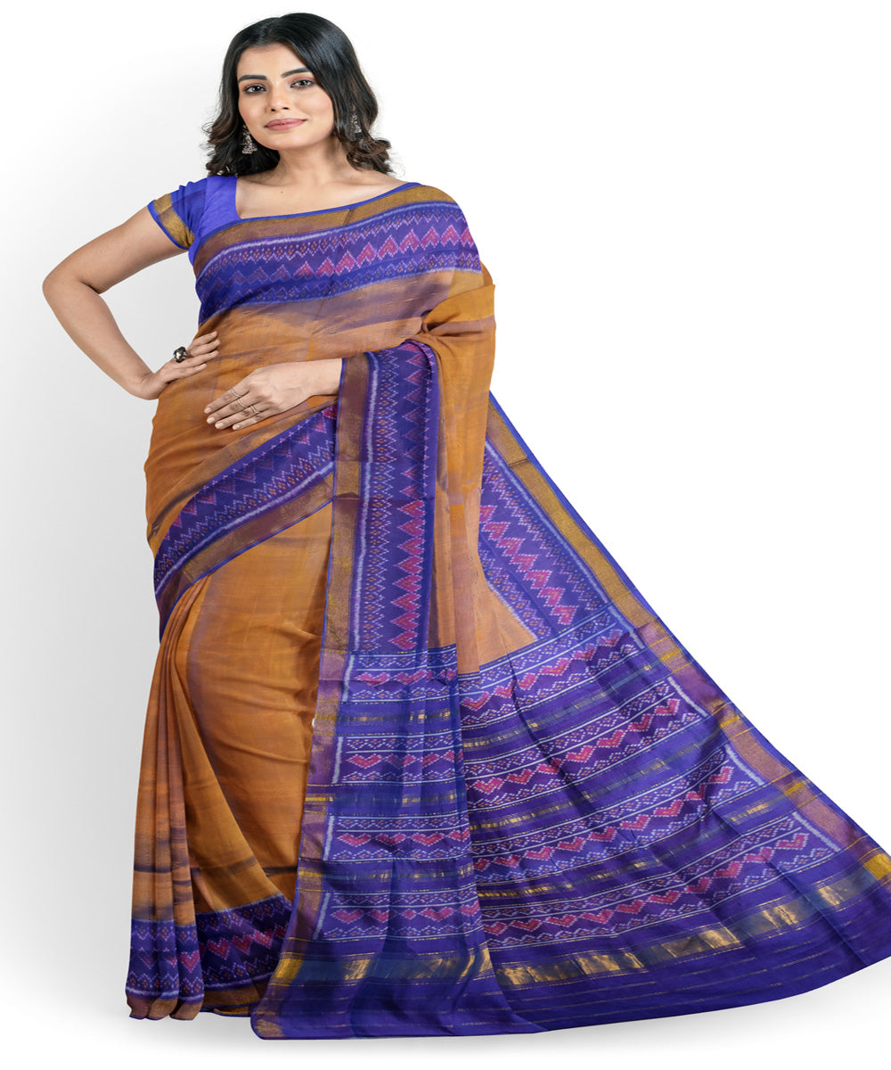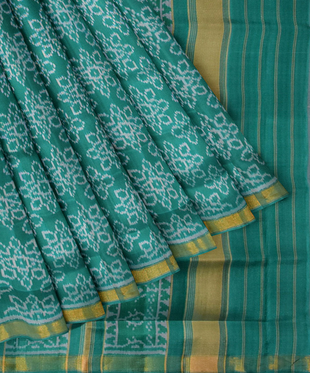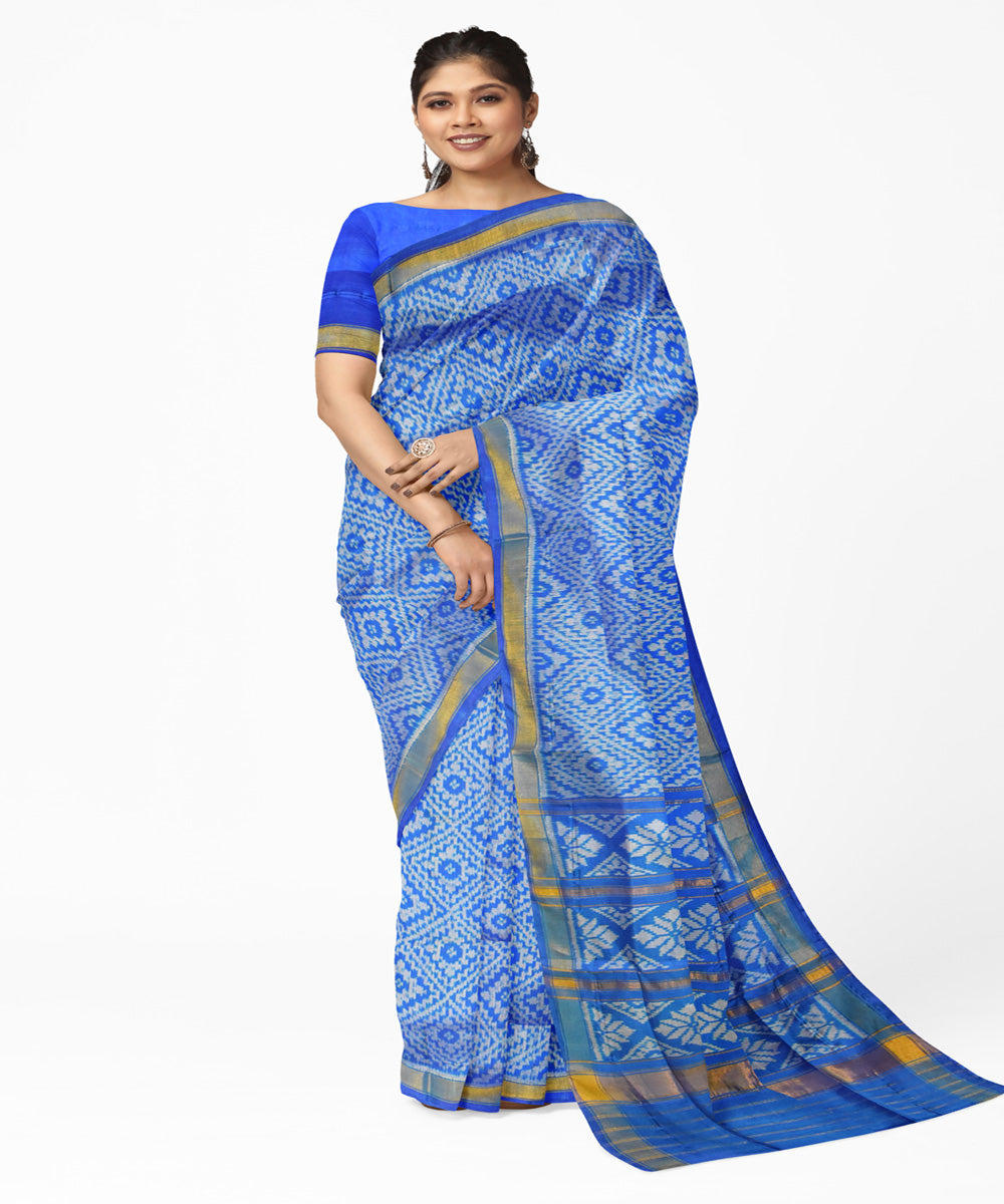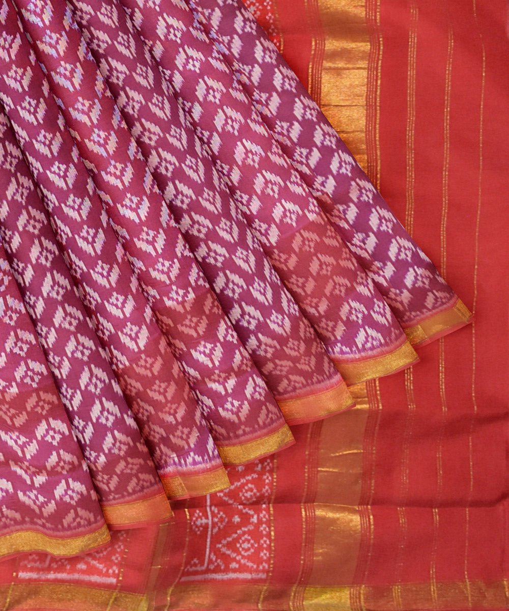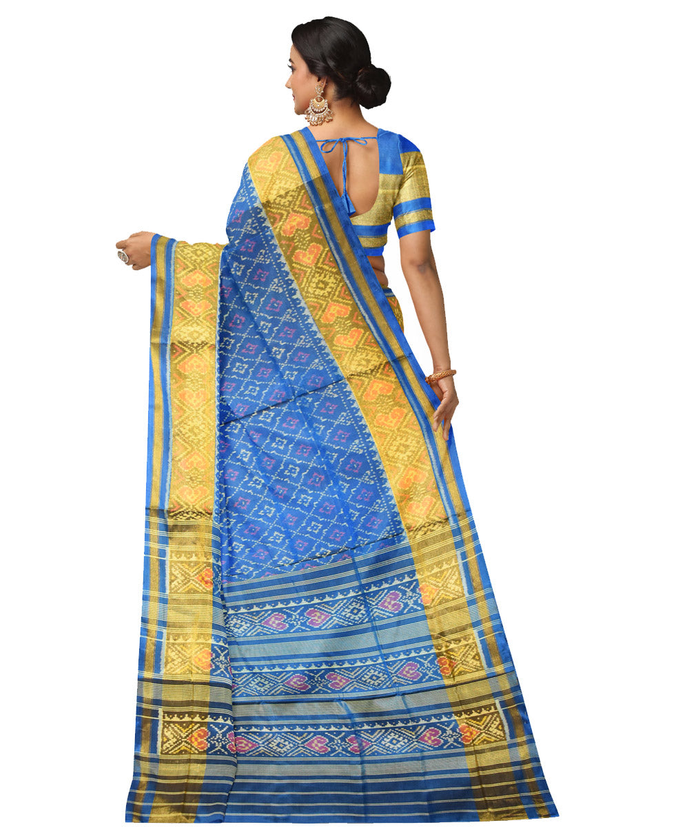 Sanskruti Silks is of Pankaj Makwana , a national award master weaver of the famous double ikkat patola from Gujarat and specialises in sarees and dupattas. Patola is a tie and dye technique of dyeing and weaving similar to Pochampally and Sambalpur Ikkat and usually comes in silk. The border and pallu come with zari and the body is entirely woven in a geometrical pattern. Patola is usually expensive because of the fabric and also the dyeing and weaving process which is intricate and time consuming.The patterns and designs of patola are very distinct. The motifs used are usually traditional flowers, elephants, birds and dancing figures and come in bright colours.