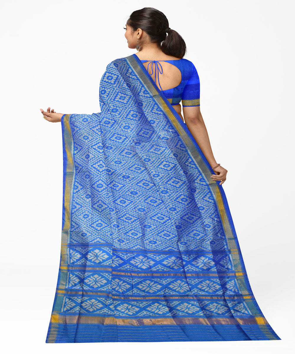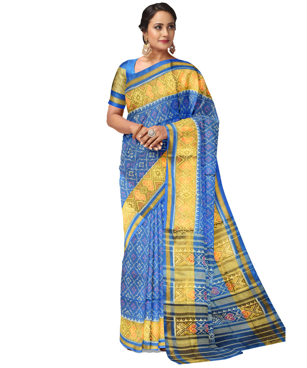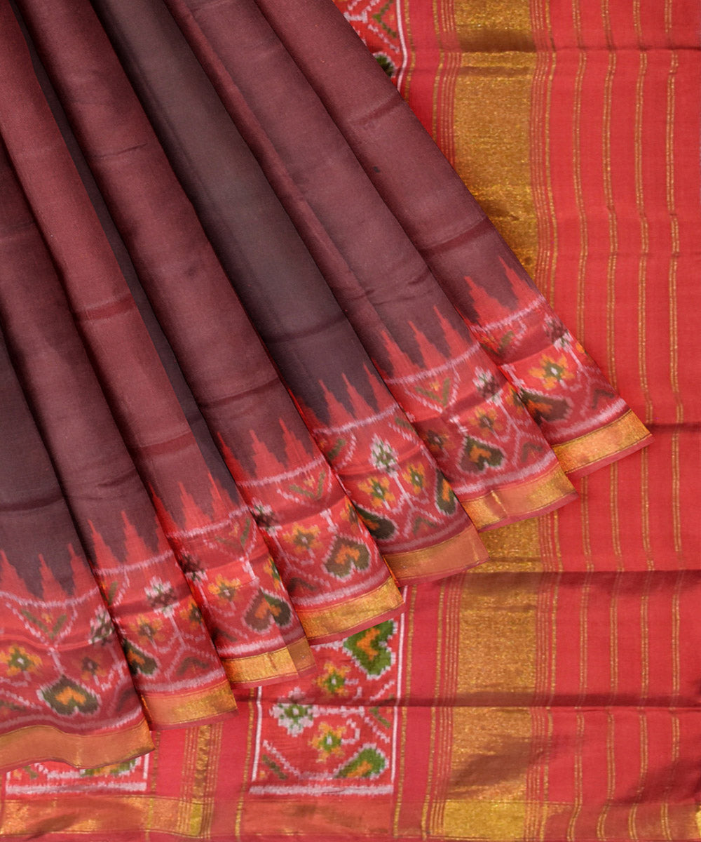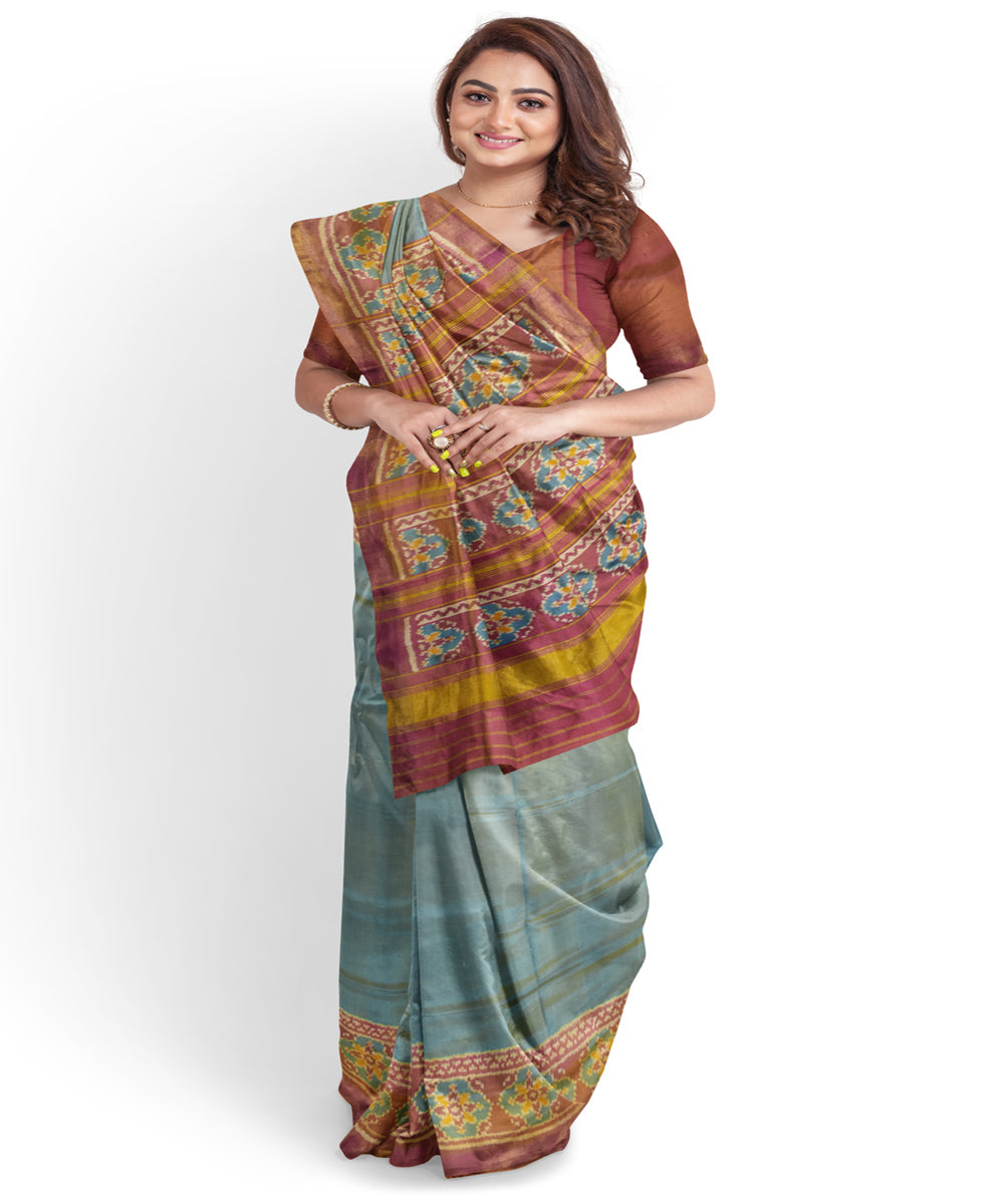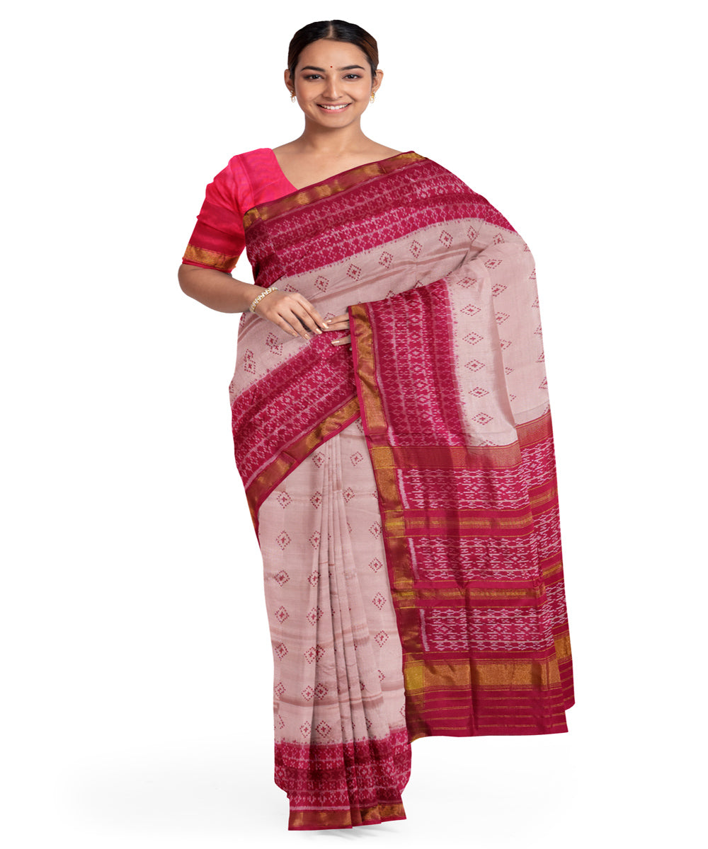Sanskruti Silks is of Pankaj Makwana , a national award master weaver of the famous double ikkat patola from Gujarat and specialises in sarees and dupattas. Patola is a tie and dye technique of dyeing and weaving similar to Pochampally and Sambalpur Ikkat and usually comes in silk. The border and pallu come with zari and the body is entirely woven in a geometrical pattern. Patola is usually expensive because of the fabric and also the dyeing and weaving process which is intricate and time consuming.The patterns and designs of patola are very distinct. The motifs used are usually traditional flowers, elephants, birds and dancing figures and come in bright colours.